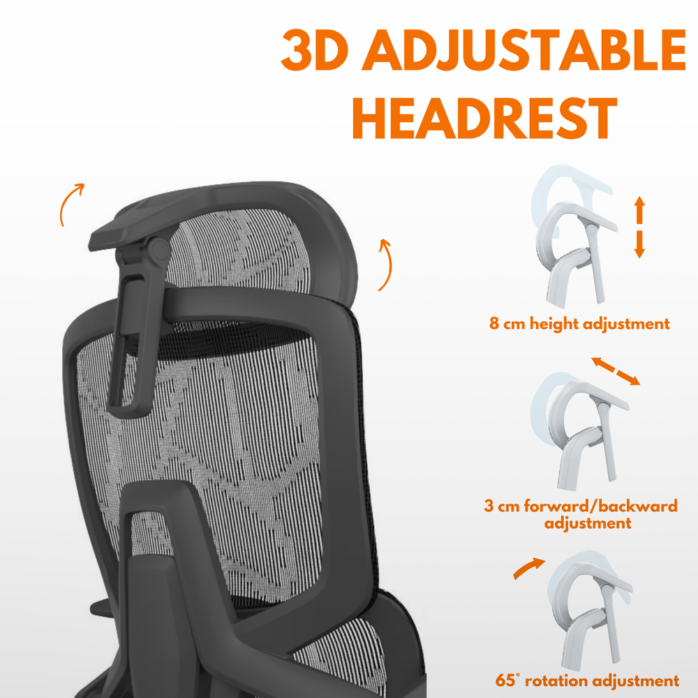 Skyland Executive Ergonomic Office Chair – High Back Mesh, Adjustable Headrest & Lumbar Support, 4D Armrests (Black)