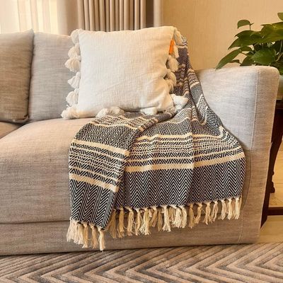 Hand Loomed Black Blanket Stitch Edging