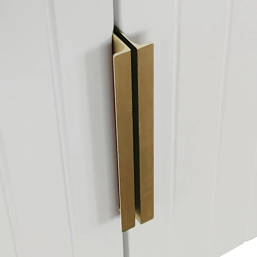 Engineered Wood With White Paint Finish Ribbed Glass Panels
