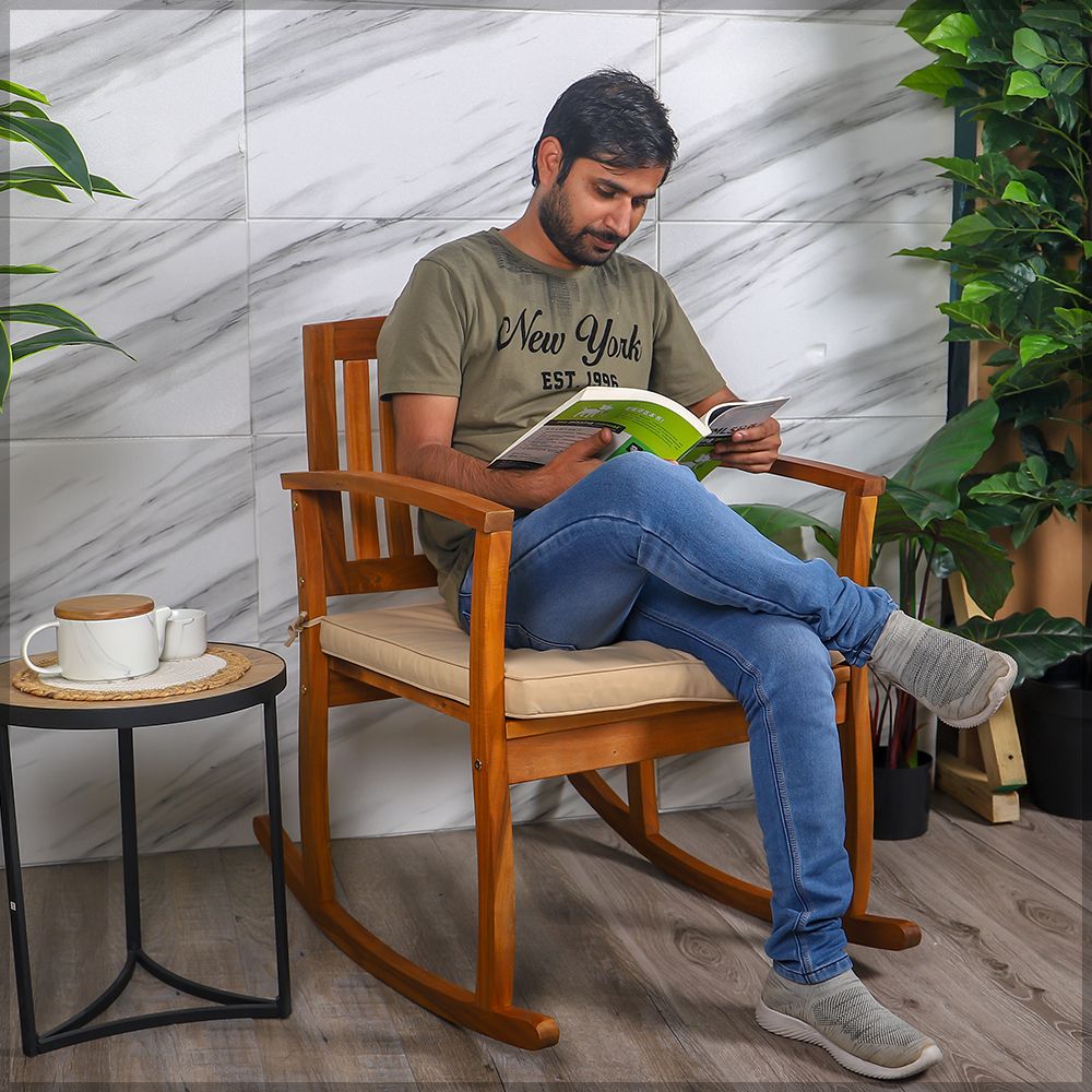Rocking Chair Colonial and Traditional Super Comfortable Cushion And With Footrest (Natural Polish)