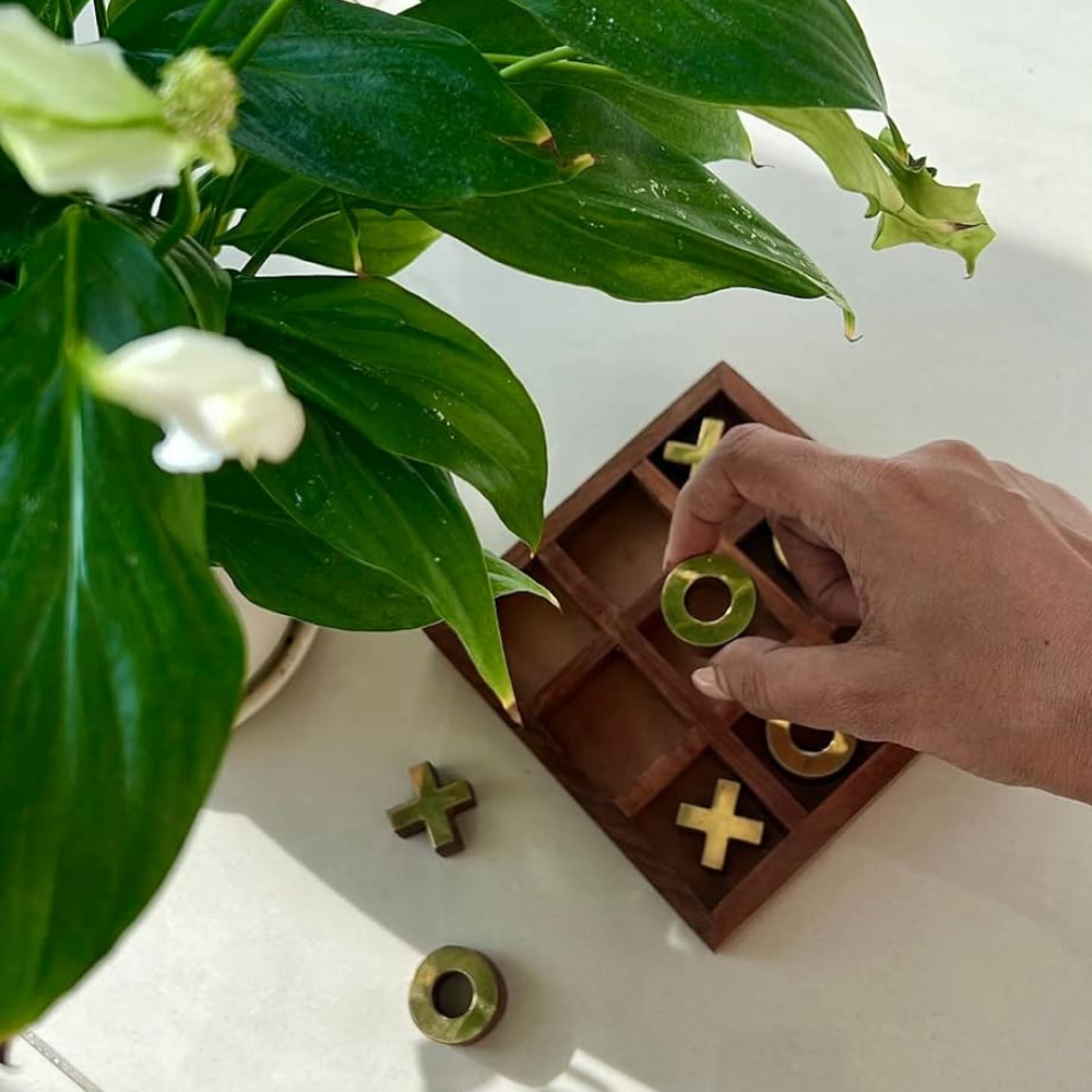Wooden Base X And O Are With Brass Top