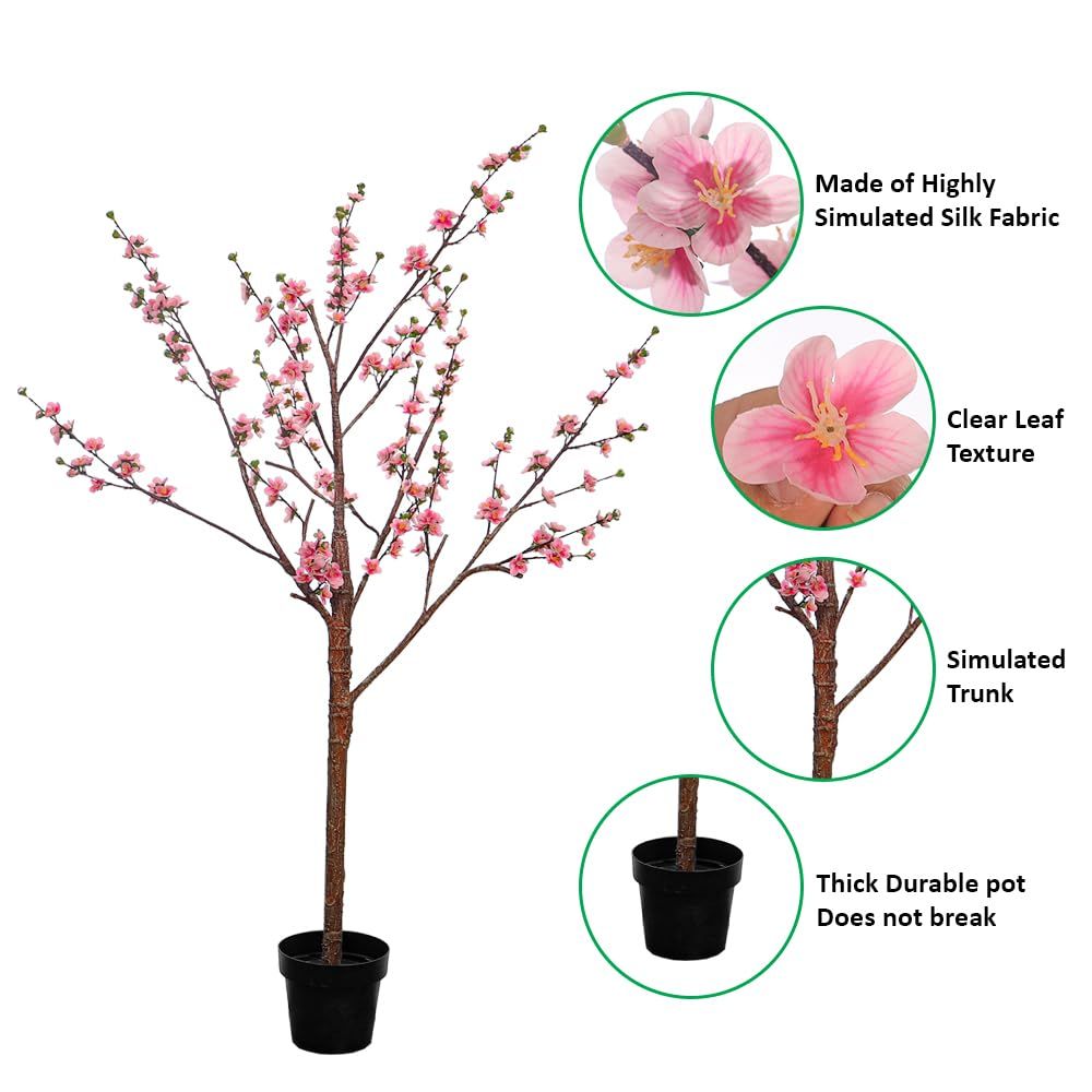 Artificial Cherry Blossom Plant Natural Wood Trunk
