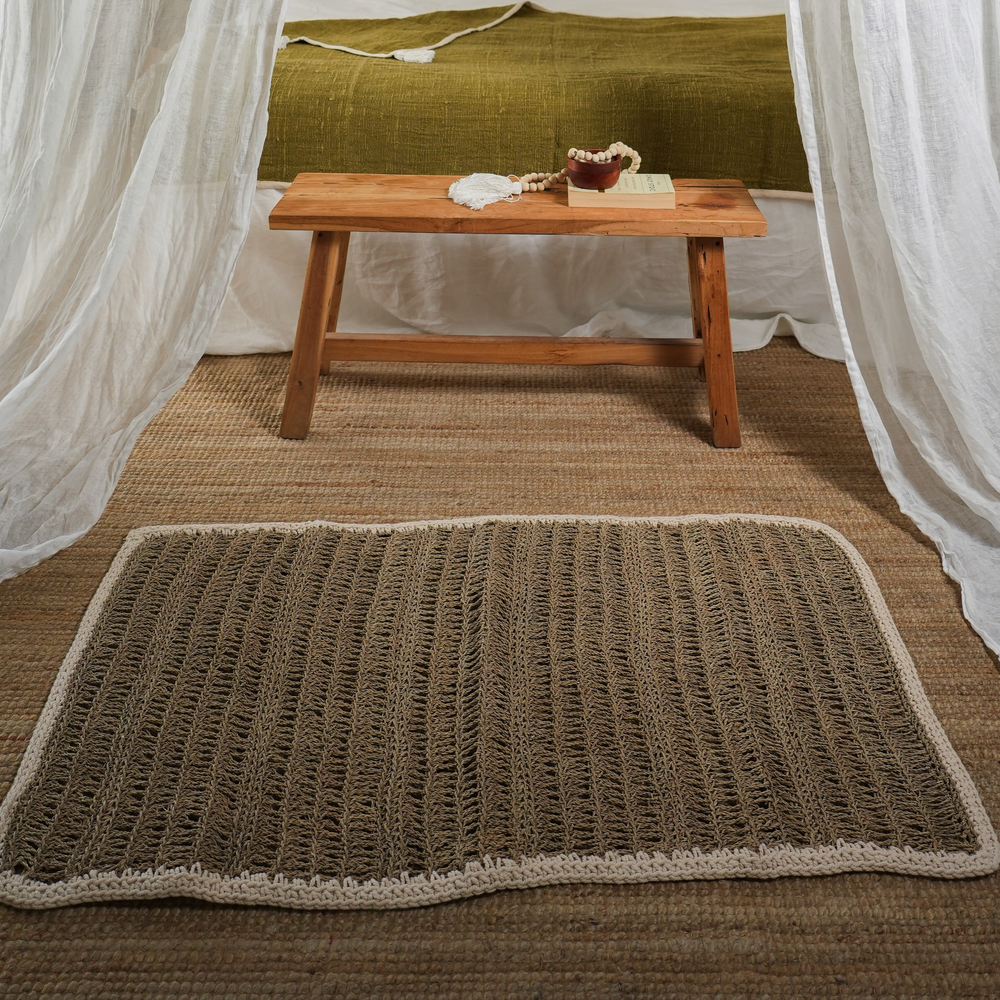 Natural Sea Grass Cushion Handwoven Natural Black