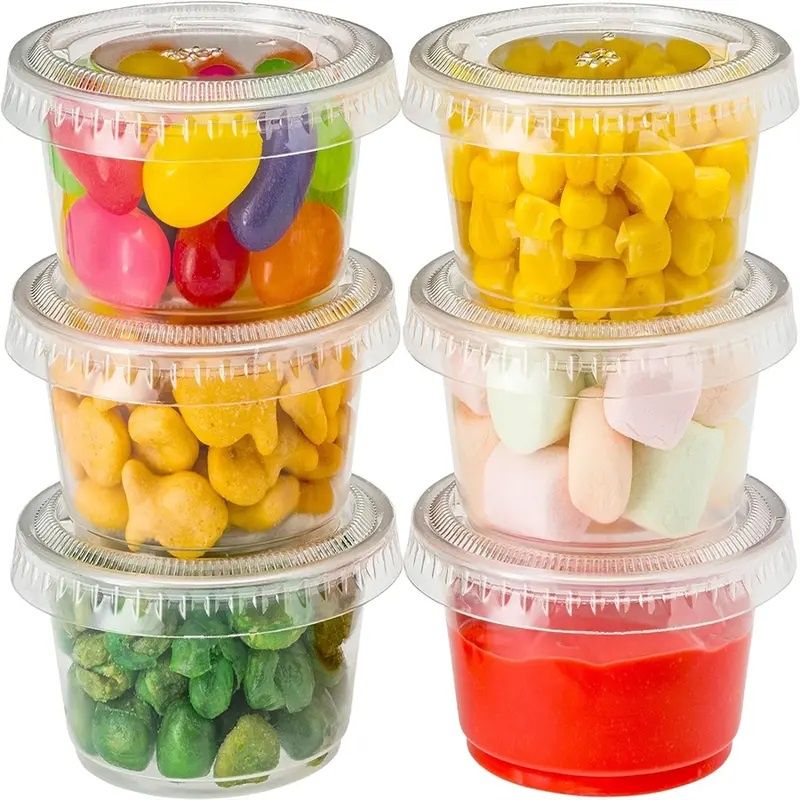 2500Pcs Clear Disposable Plastic Portion 2.5Oz Cups with Lids Size 6x4.2 cm