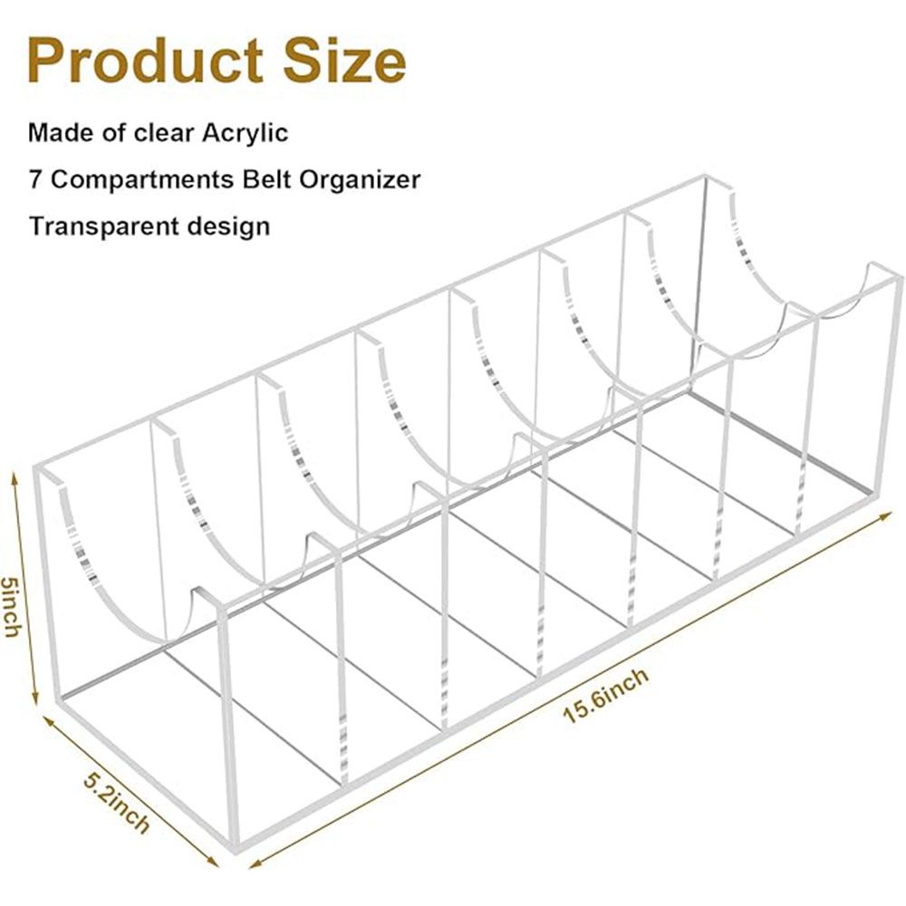 2Pack Belt Organizer, Acrylic Belt Storage Holder 7 Compartments Clear Belt Display Case Belt Container Holder for The Closet Drawer Bow Tie Watch Jewelry Bracelets Ring Cosmetic