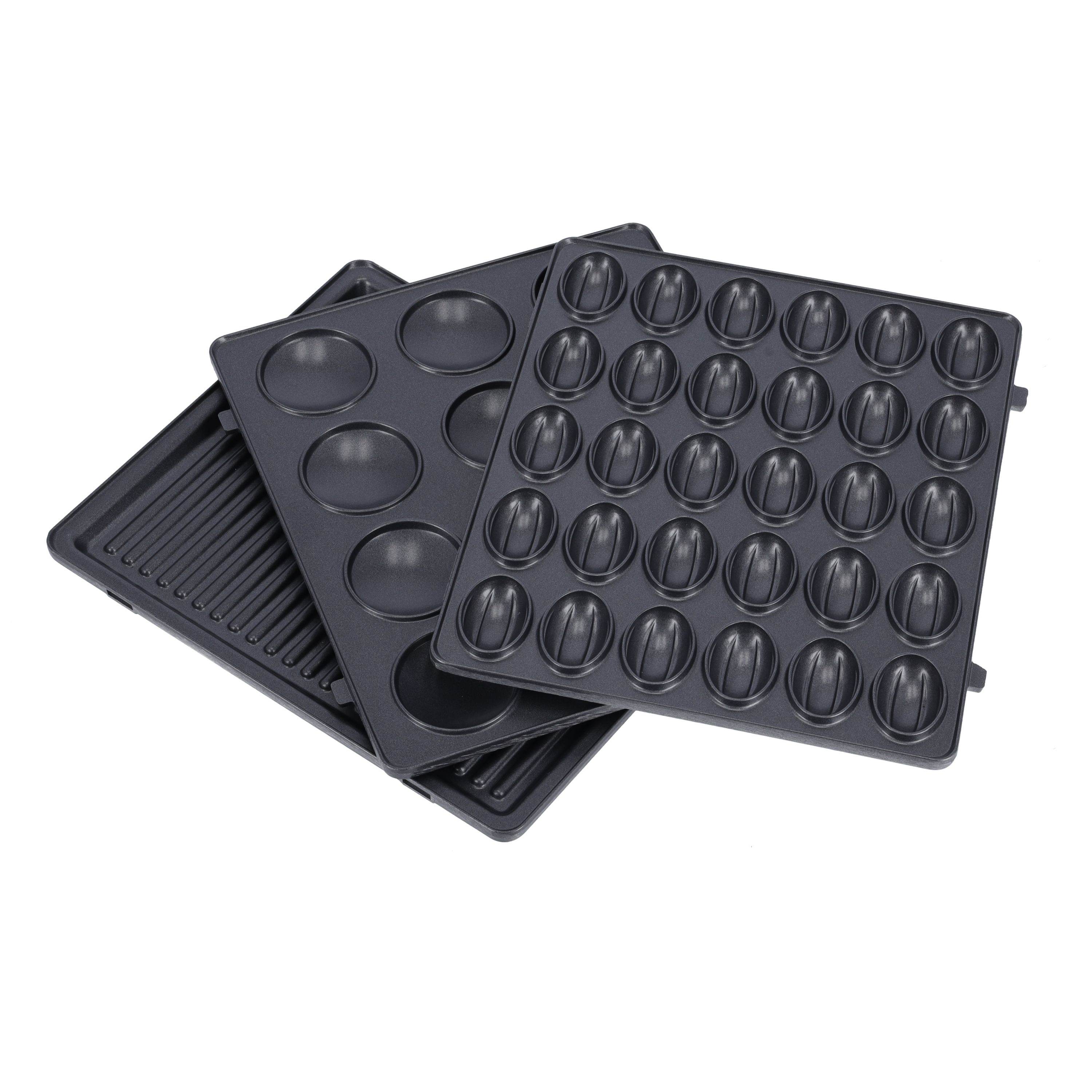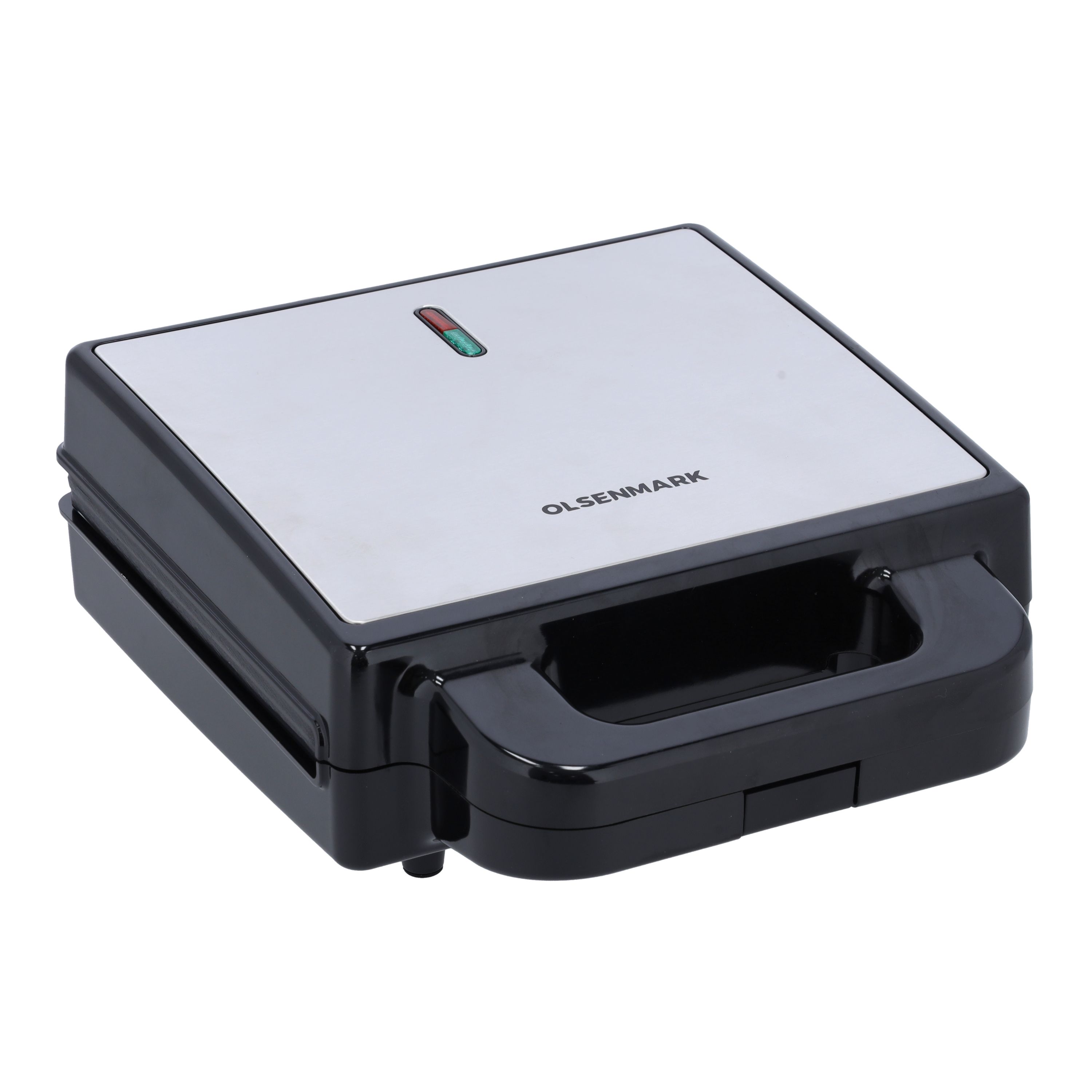 3-IN-1 Snack Maker Grill / Sandwich Maker, Nuts Cake Maker and Cupcake Maker| Non-Stick Interchangeable Plates| Adjustable Temperature with Power Indicator| Silver| 2 Years Warranty 1400 W OMSM2490 black
