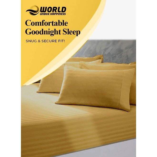 3 Piece Luxury Gold Striped Bed Sheet Set with 1 Deep Pocket Fitted Sheet and 2 Pillowcases for Hotel and Home Crafted from Ultra Soft and Breathable Cotton for Year-Round Comfort, Double