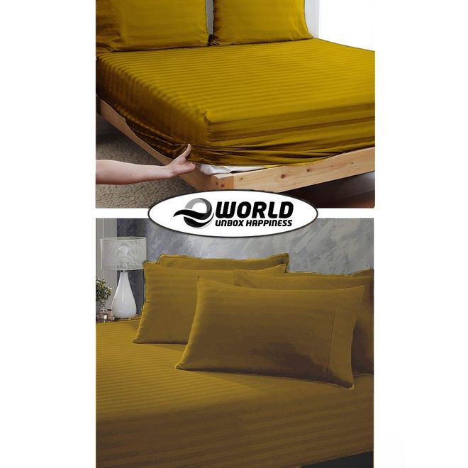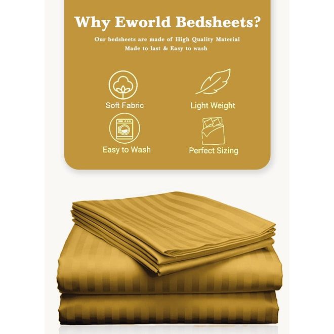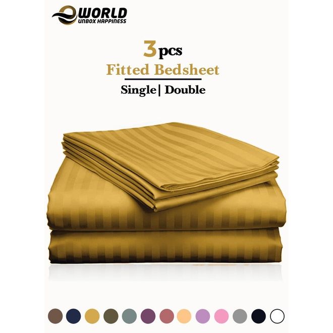 3 Piece Luxury Gold Striped Bed Sheet Set with 1 Deep Pocket Fitted Sheet and 2 Pillowcases for Hotel and Home Crafted from Ultra Soft and Breathable Cotton for Year-Round Comfort, Single