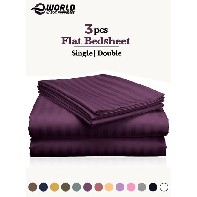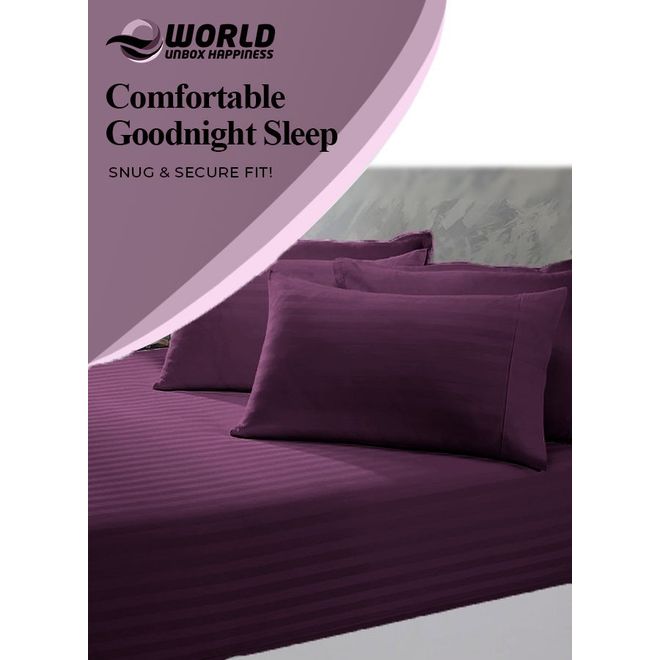 3 Piece Luxury Purple Striped Bed Sheet Set with 1 Flat Sheet and 2 Pillowcases for Hotel and Home Crafted from Ultra Soft and Breathable Cotton for Year-Round Comfort, Double