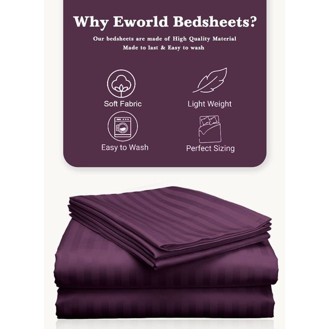 صور المنتج 3 Piece Luxury Purple Striped Bed Sheet Set with 1 Flat Sheet and 2 Pillowcases for Hotel and Home Crafted from Ultra Soft and Breathable Cotton for Year-Round Comfort, Double تستخدم لأغراض التوضيح فقط. وقد يختلف لون المنتج قليلاً بسبب إضاءة التصوير أو إعدادات الشاشة.