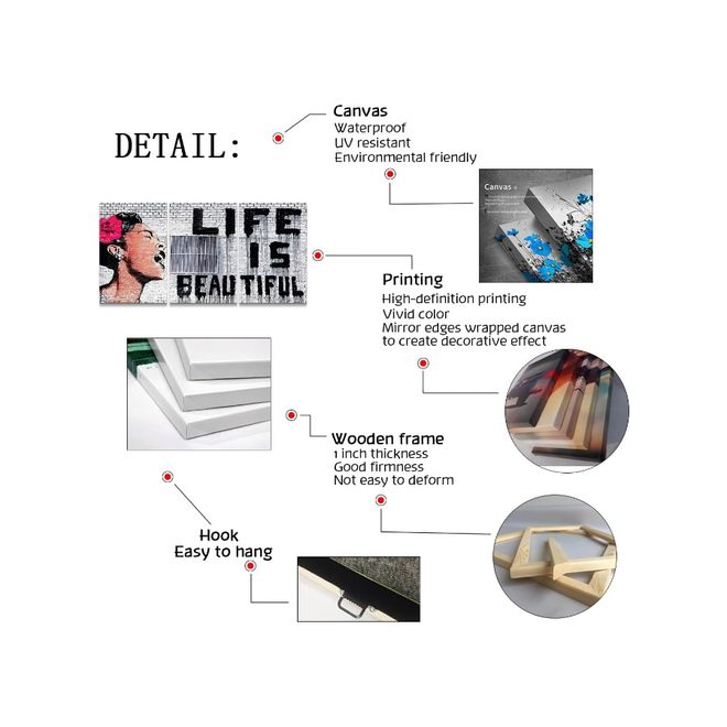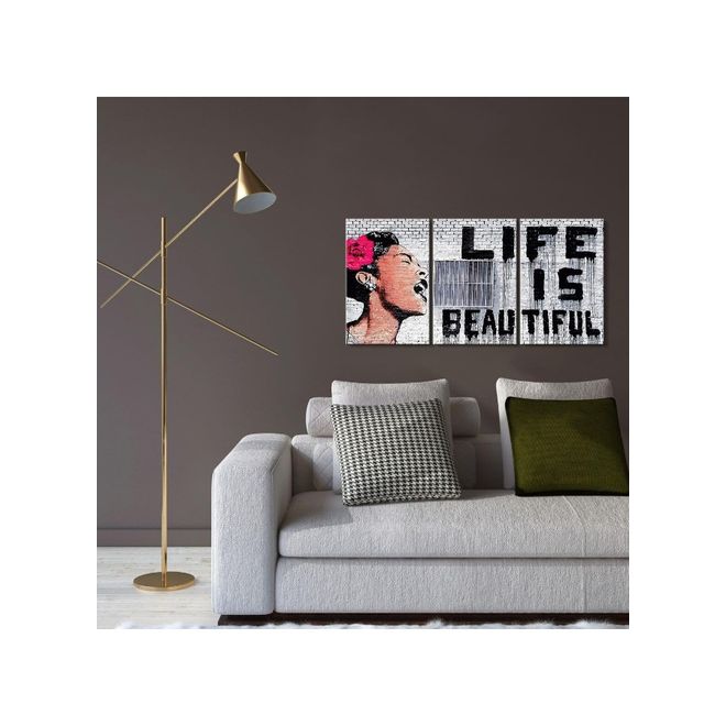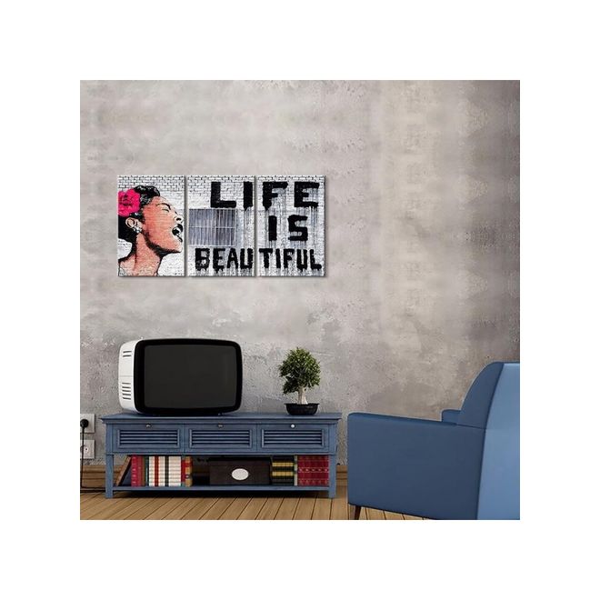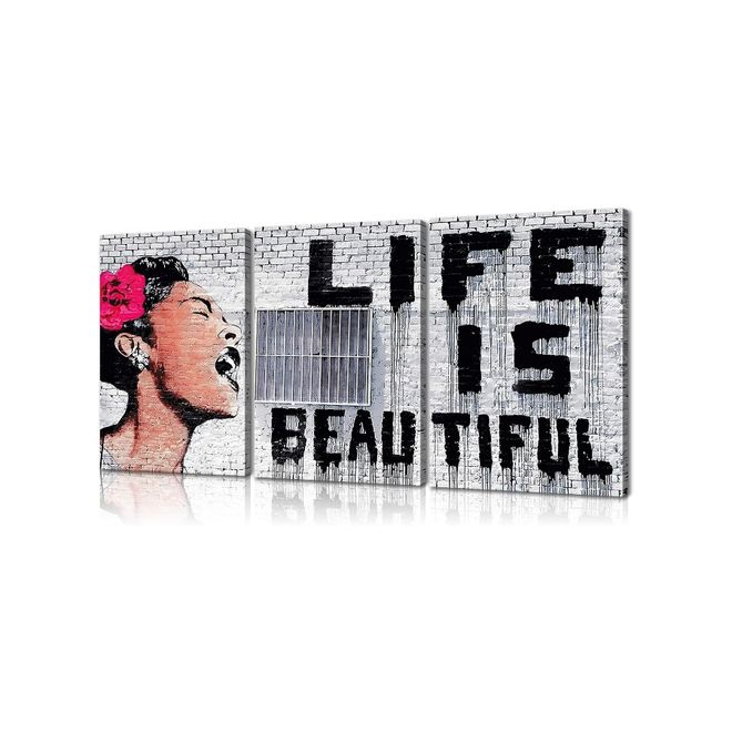 3 Pieces Banksy Canvas Art Colorful Posters Life Is Beautiful Wall Decor Pop Street Living Room 12''Wx16''H