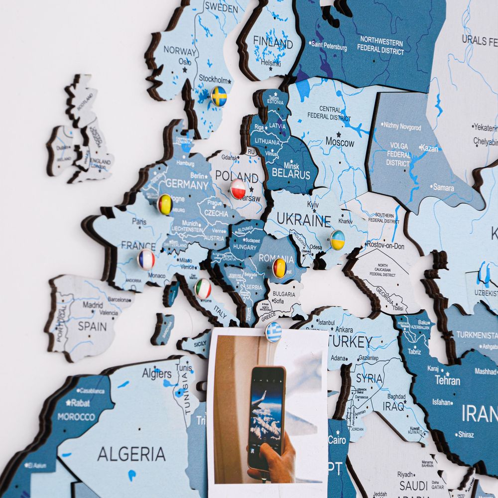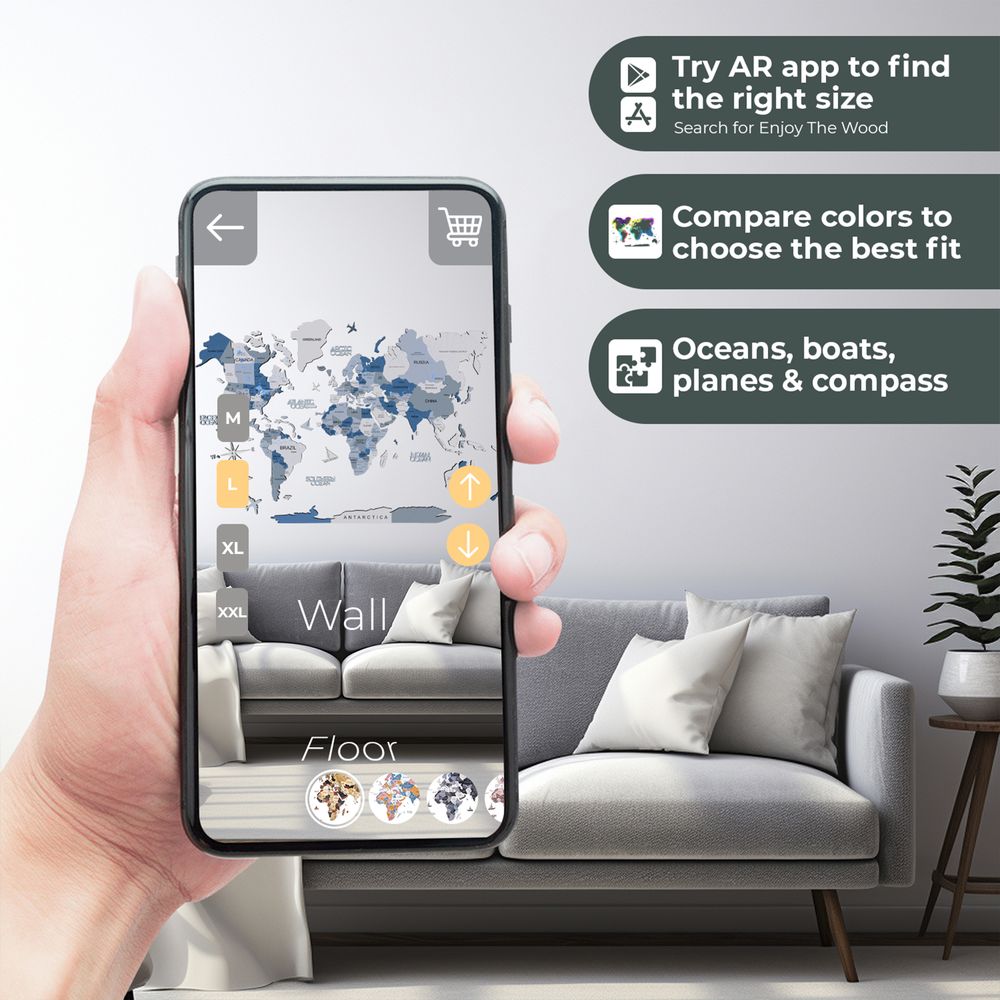 الخريطة العالمية الخشبية ثلاثية الأبعاد - أكوا | طول النسخة الخاصة الكبرى (300 × 175 سم)