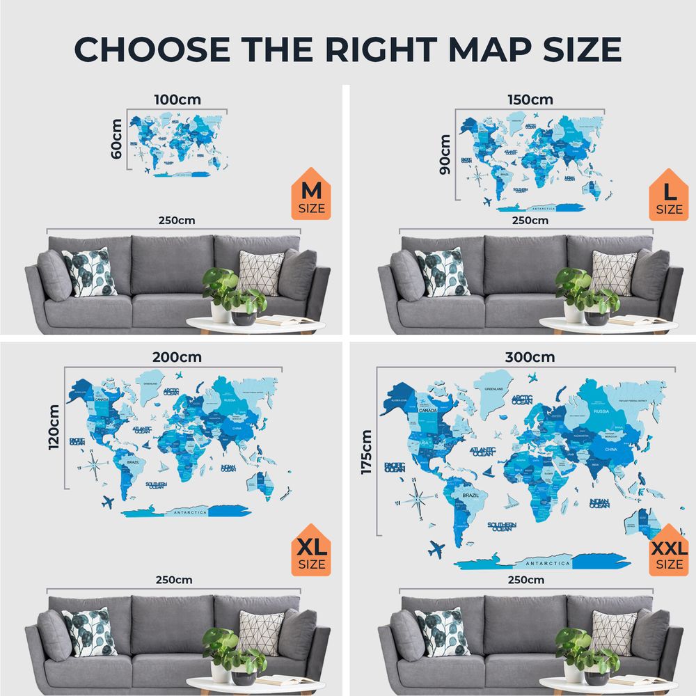 الخريطة العالمية الخشبية ثلاثية الأبعاد - أزرق سماوي | متوسطة الحجم (100 × 60 سم)