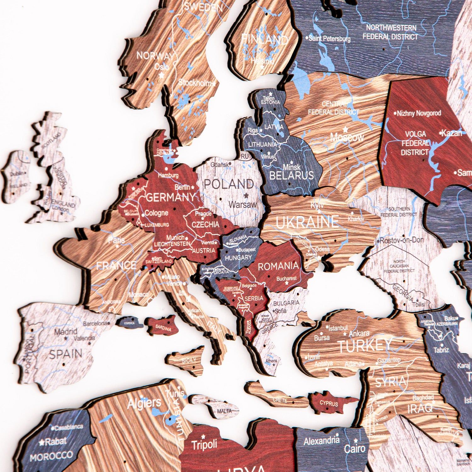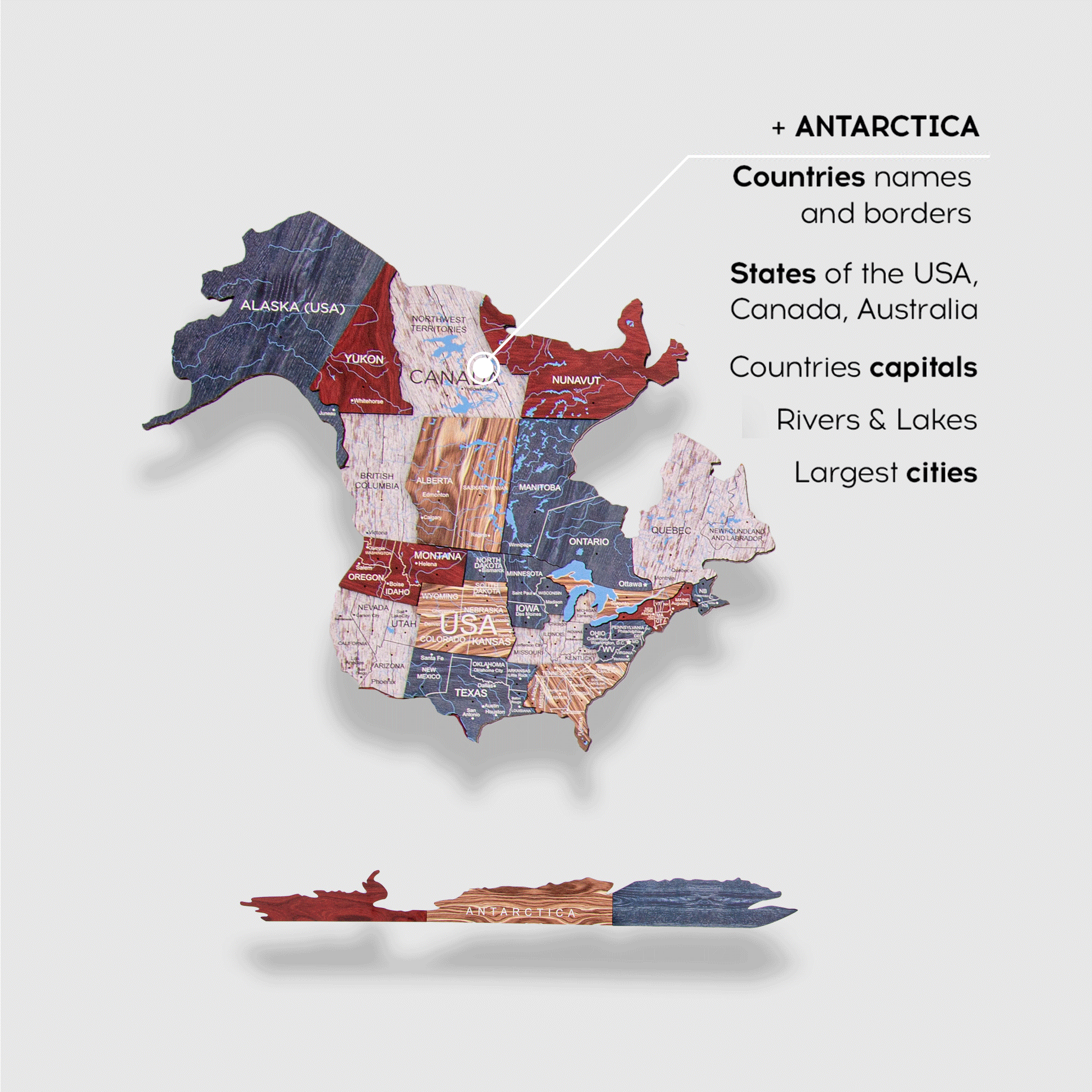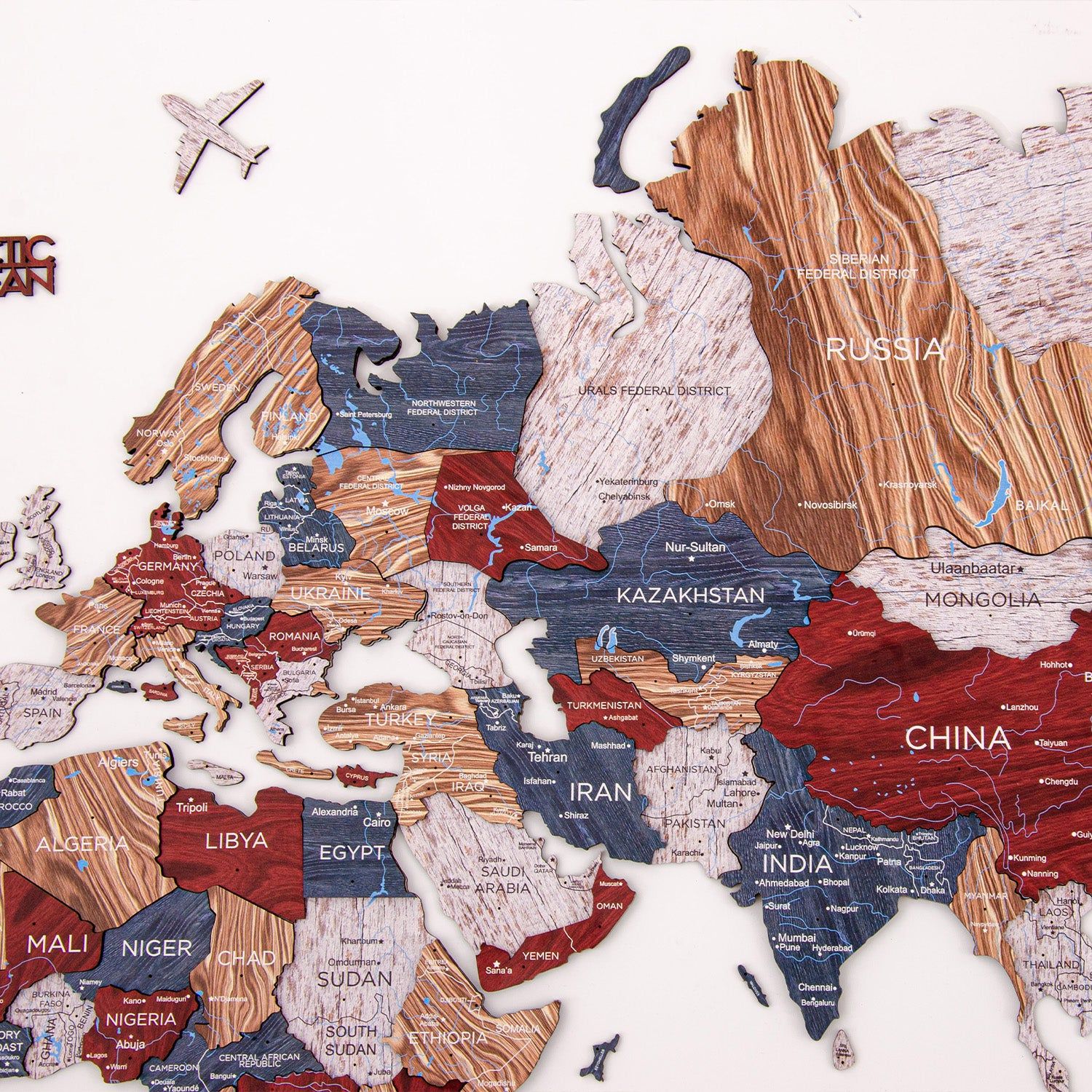 الخريطة العالمية الخشبية ثلاثية الأبعاد - بوهو | طول النسخة الكبرى (200 × 120 سم)