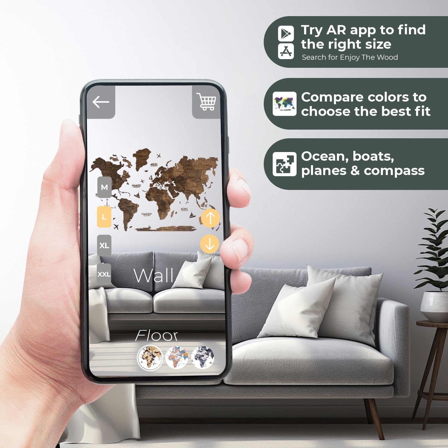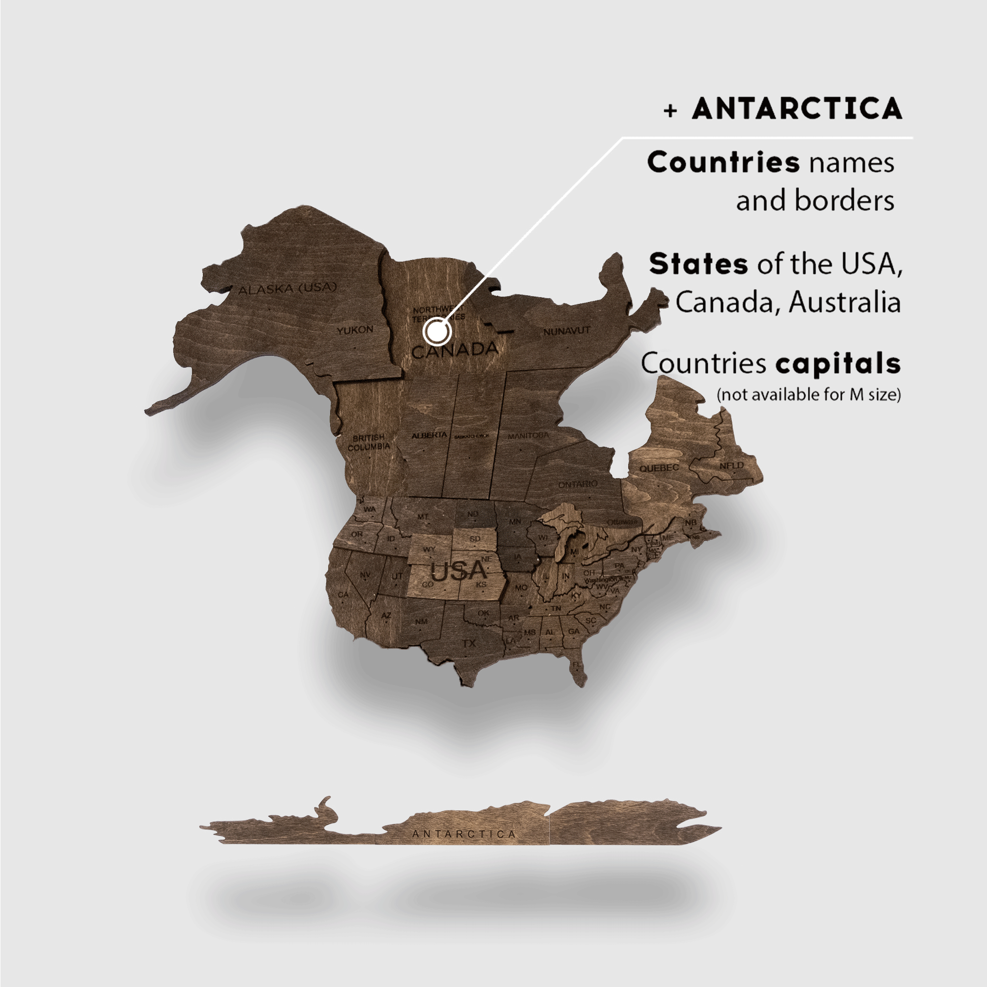 الخريطة العالمية الخشبية ثلاثية الأبعاد - بنية داكنة | متوسطة الحجم (100 × 60 سم)