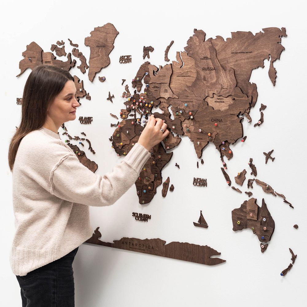 الخريطة العالمية الخشبية ثلاثية الأبعاد - بنية داكنة | طول النسخة الخاصة الكبرى (300 × 175 سم)