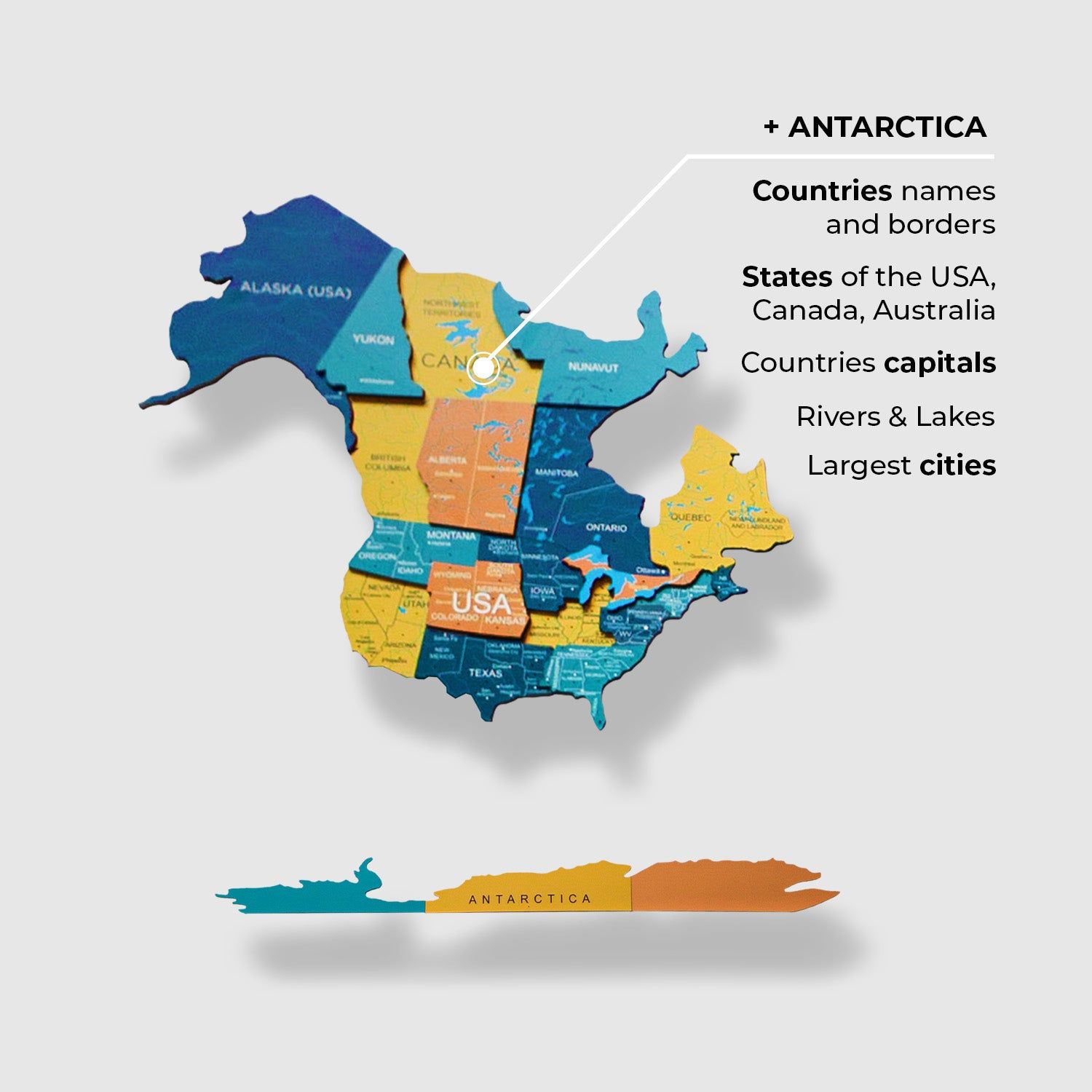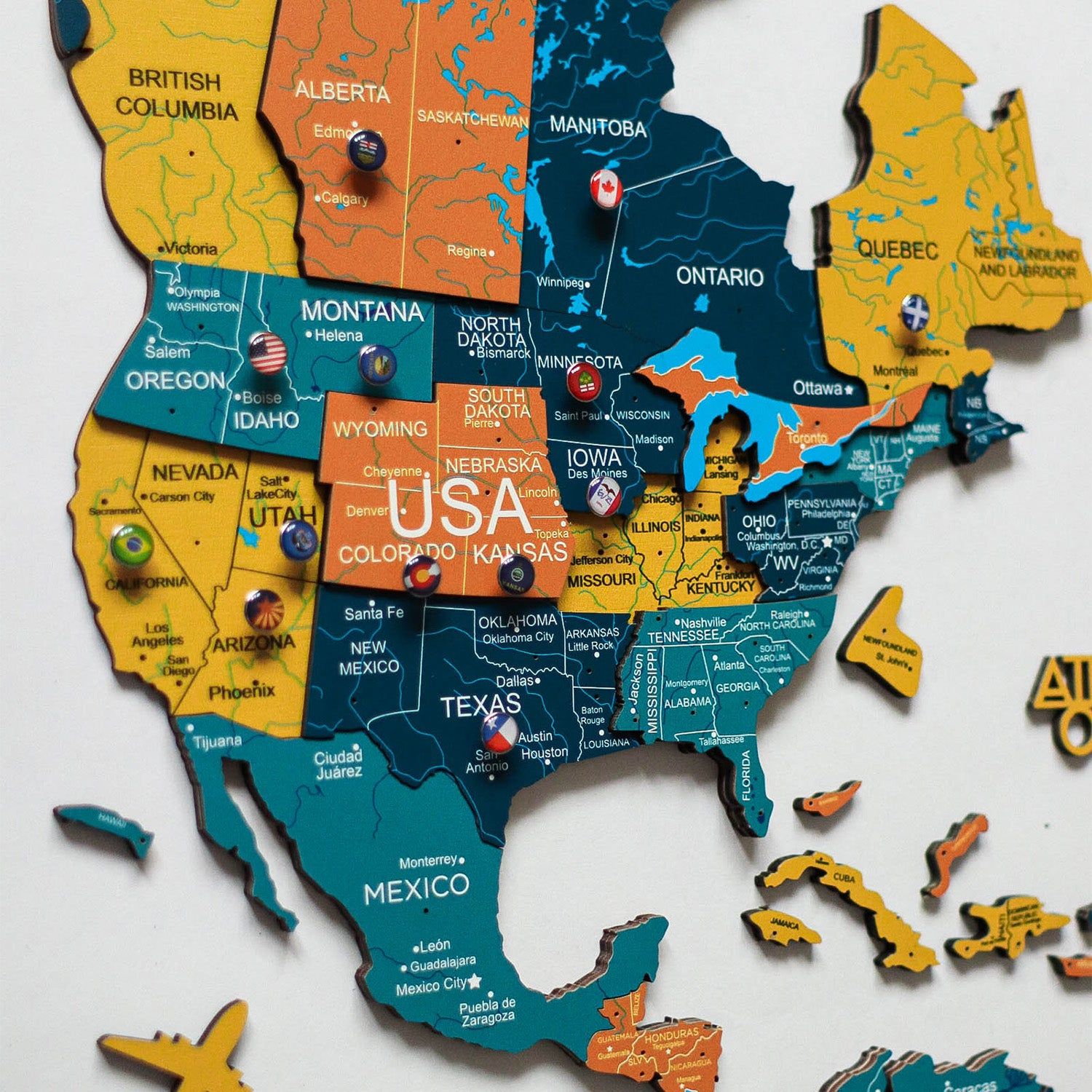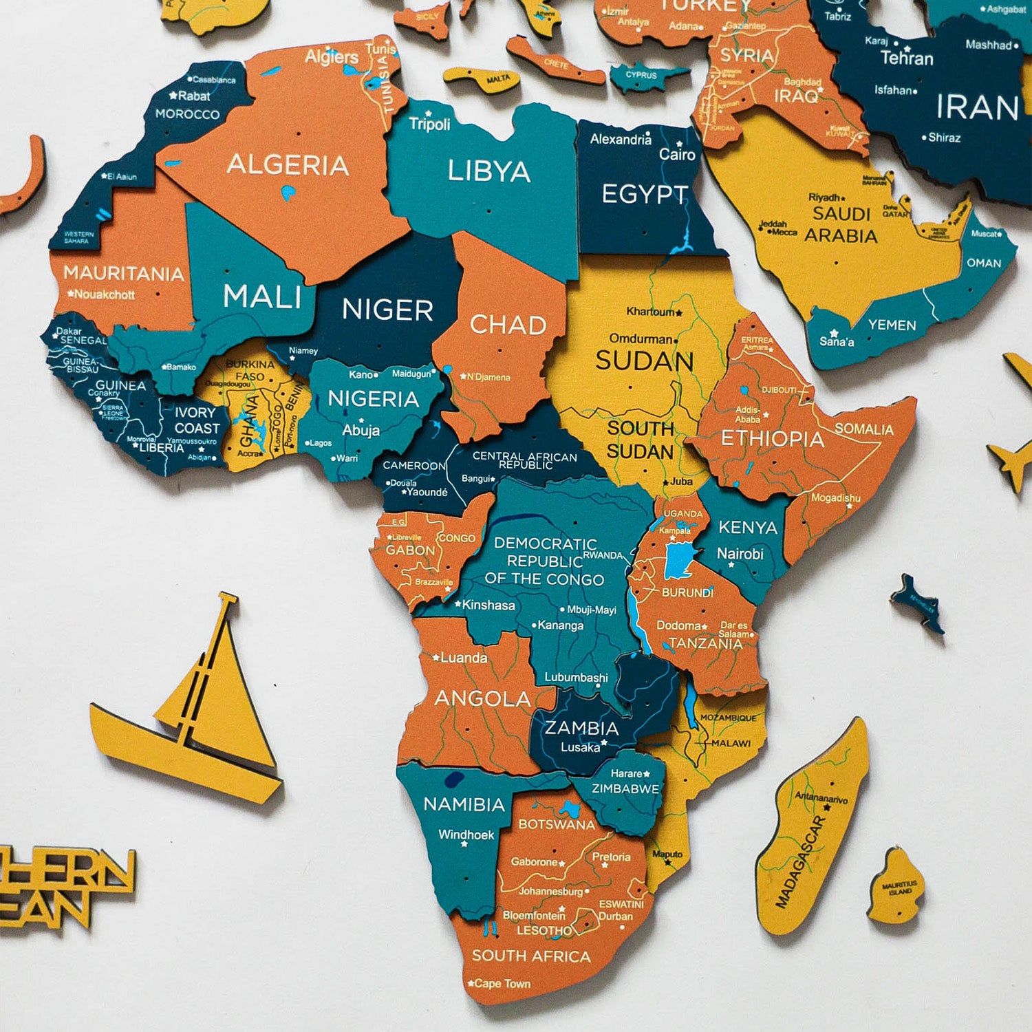 الخريطة العالمية الخشبية ثلاثية الأبعاد - إندي | متوسطة الحجم (100 × 60 سم)