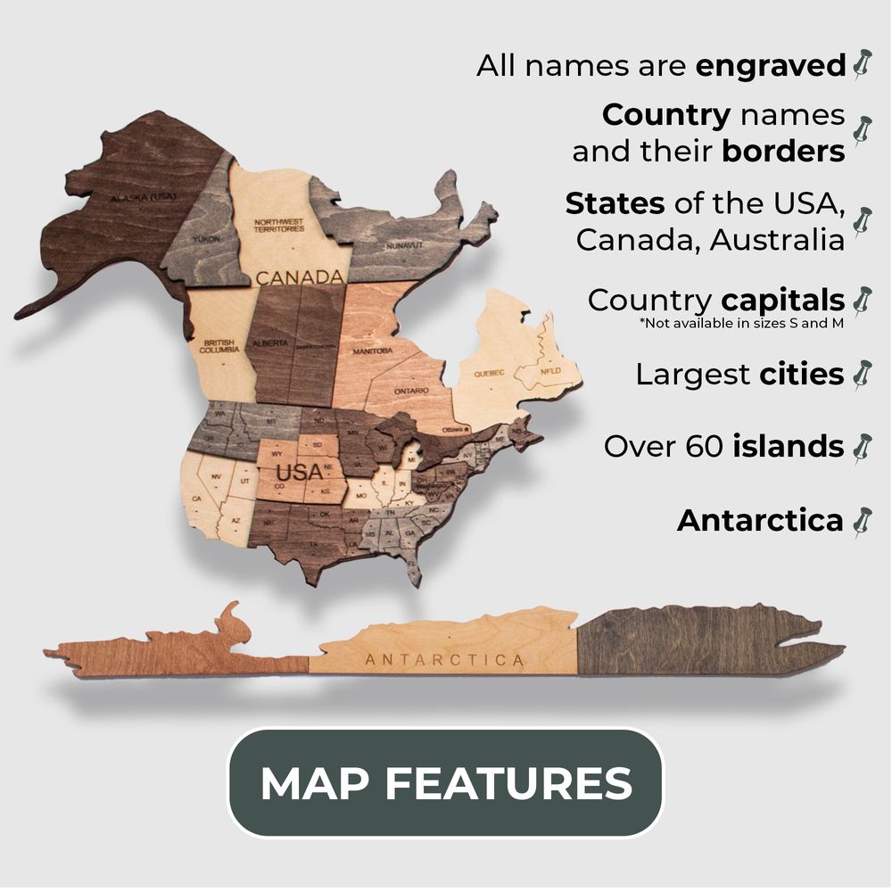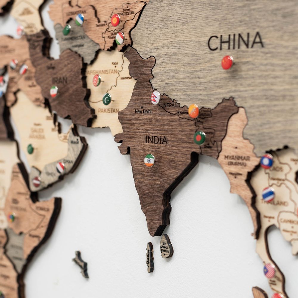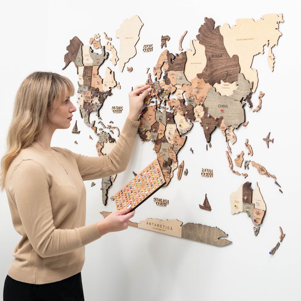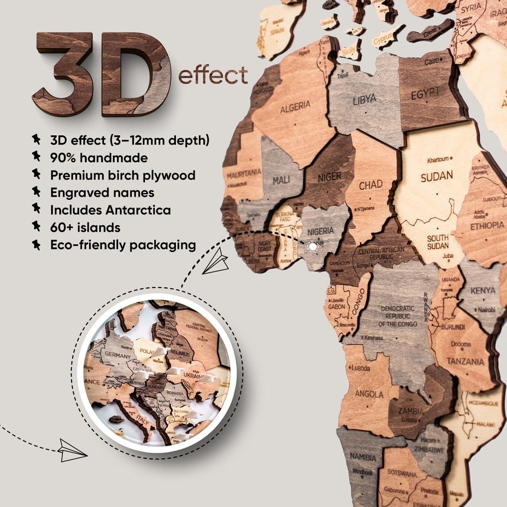 الخريطة العالمية الخشبية ثلاثية الأبعاد - دخاني | طول النسخة الكبرى (200 × 120 سم)