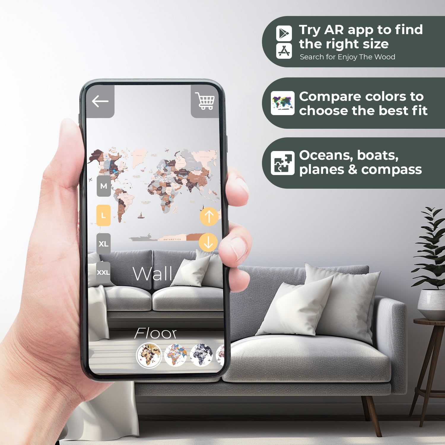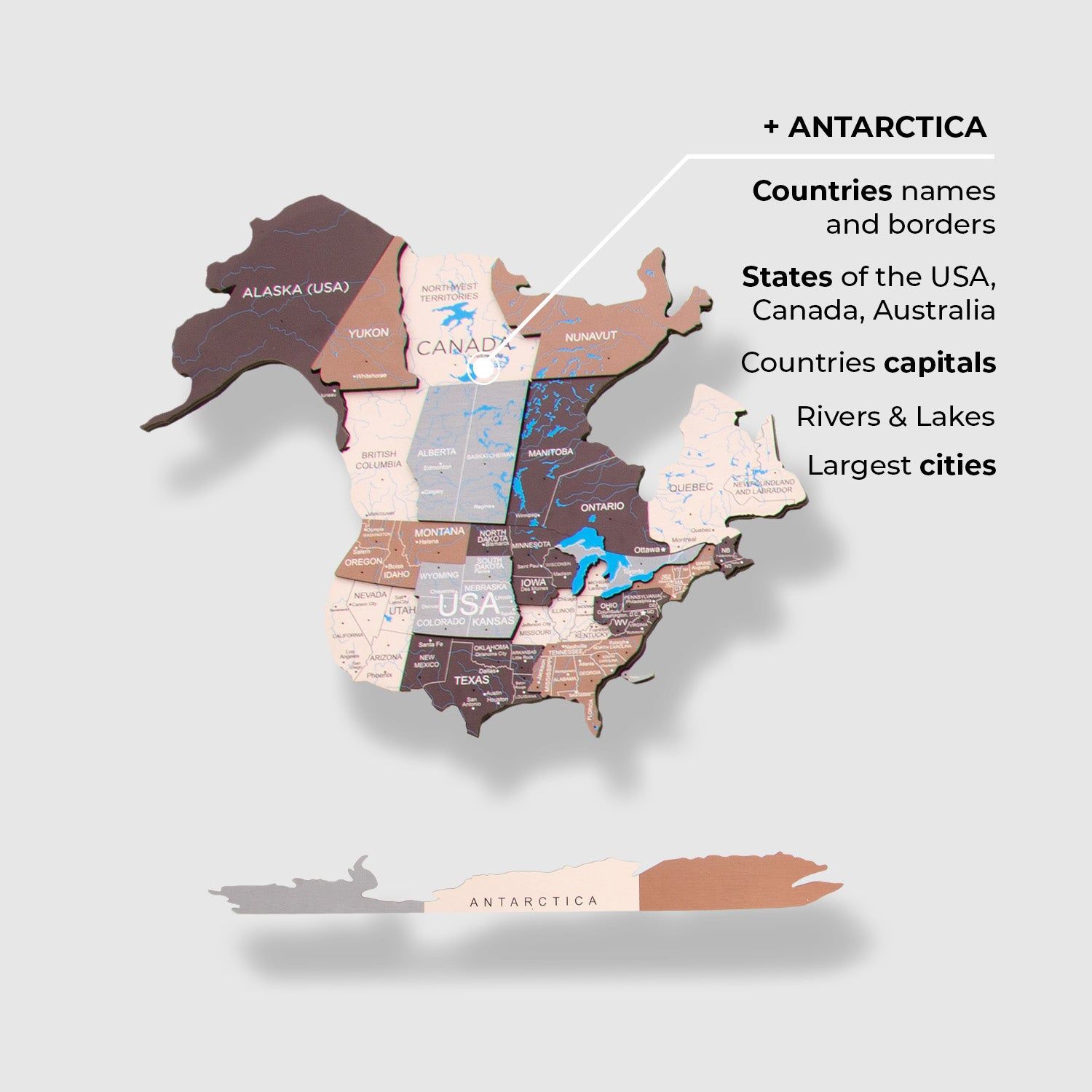 الخريطة العالمية الخشبية ثلاثية الأبعاد - الضواحي | طول النسخة الكبرى (200 × 120 سم)