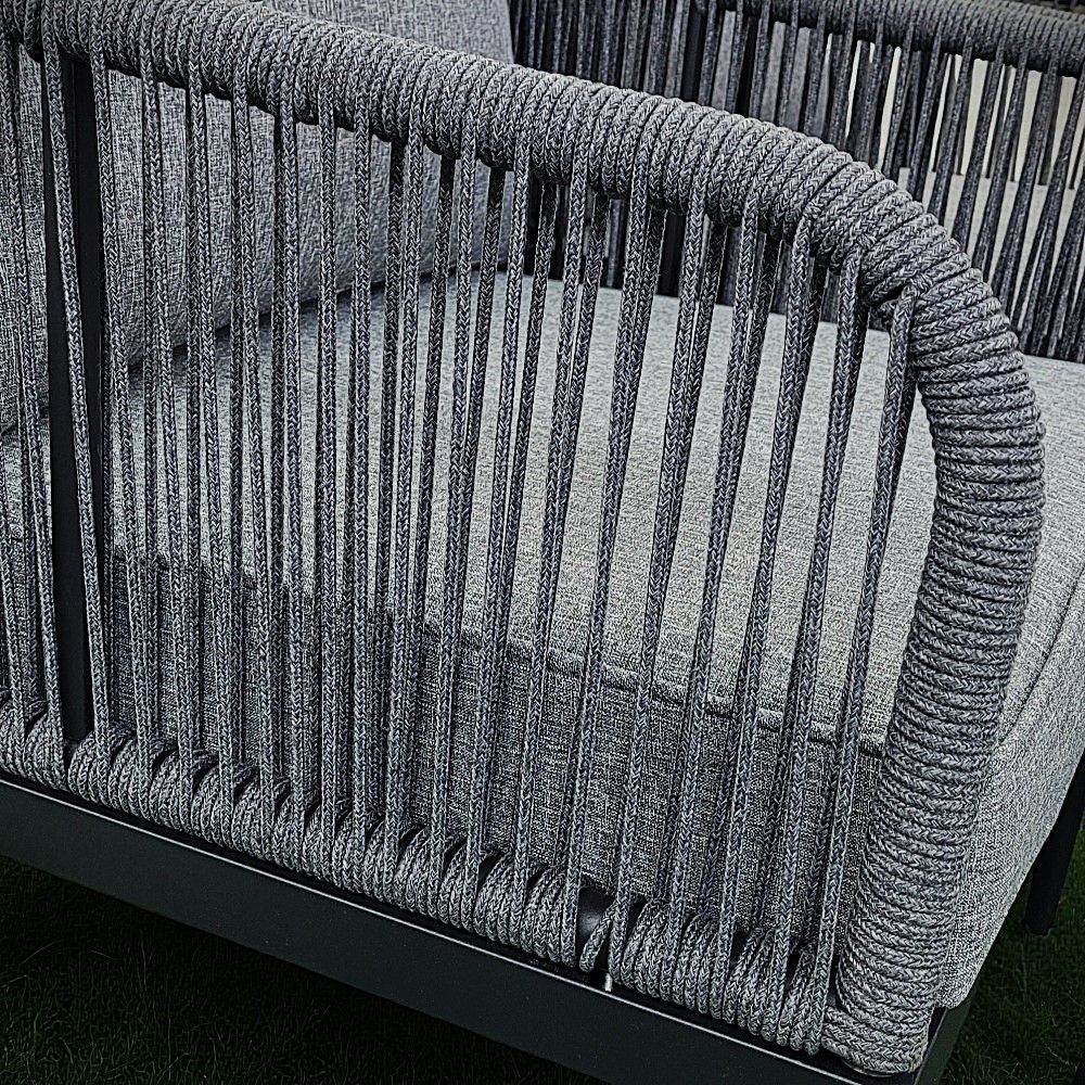 5-Seater Modern Rope Design Outdoor Sofa Set – Black Aluminium Frame with Grey Cushions