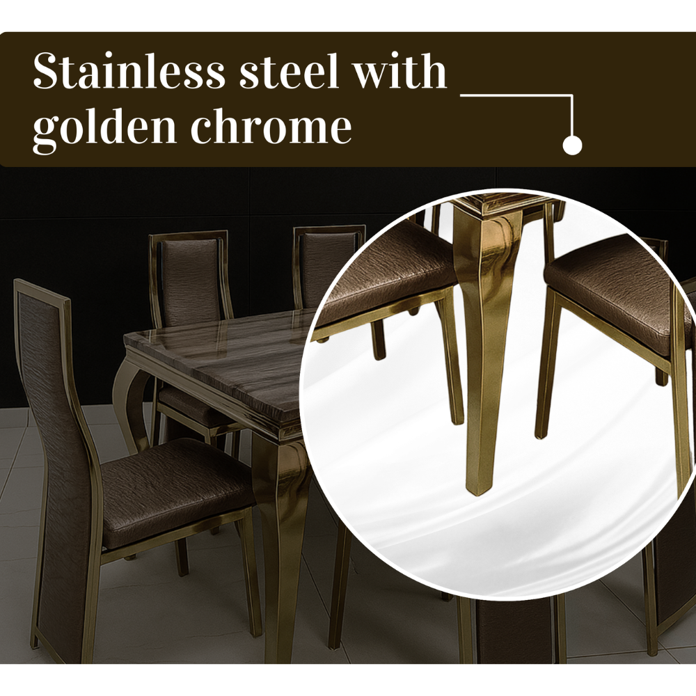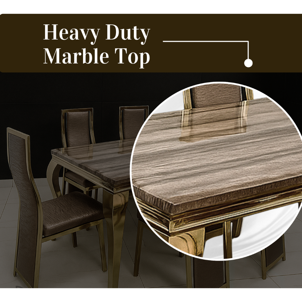 luxury dining table - sintered stone has formed a better decorative effect due to the coherence, color and touch of its texture. Combining the iron legs and the sintered stone desktop into a luxurious table, its unique texture and impeccable quality have achieved a marvelous beauty. The irregular texture tabletop can bring a lively flowing beauty to the space, making the whole home space look more bright.