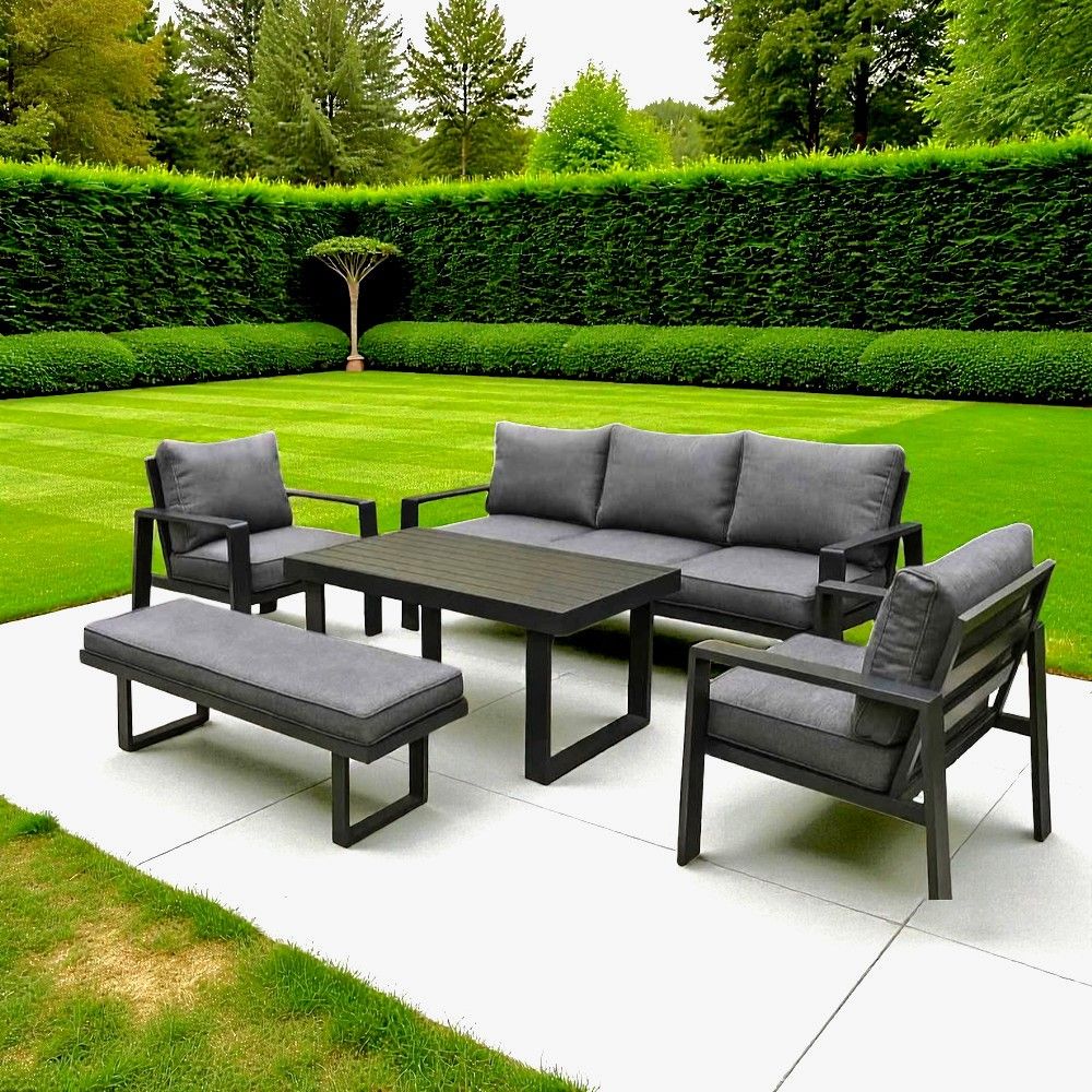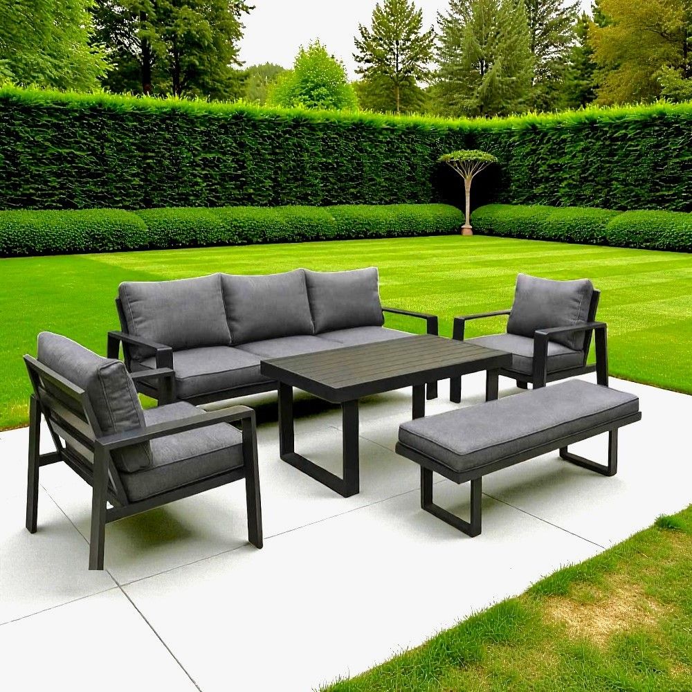 7-Seater Outdoor Aluminium Sofa Set – Modern Dark Grey Garden & Patio Furniture