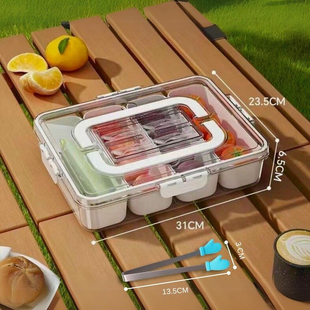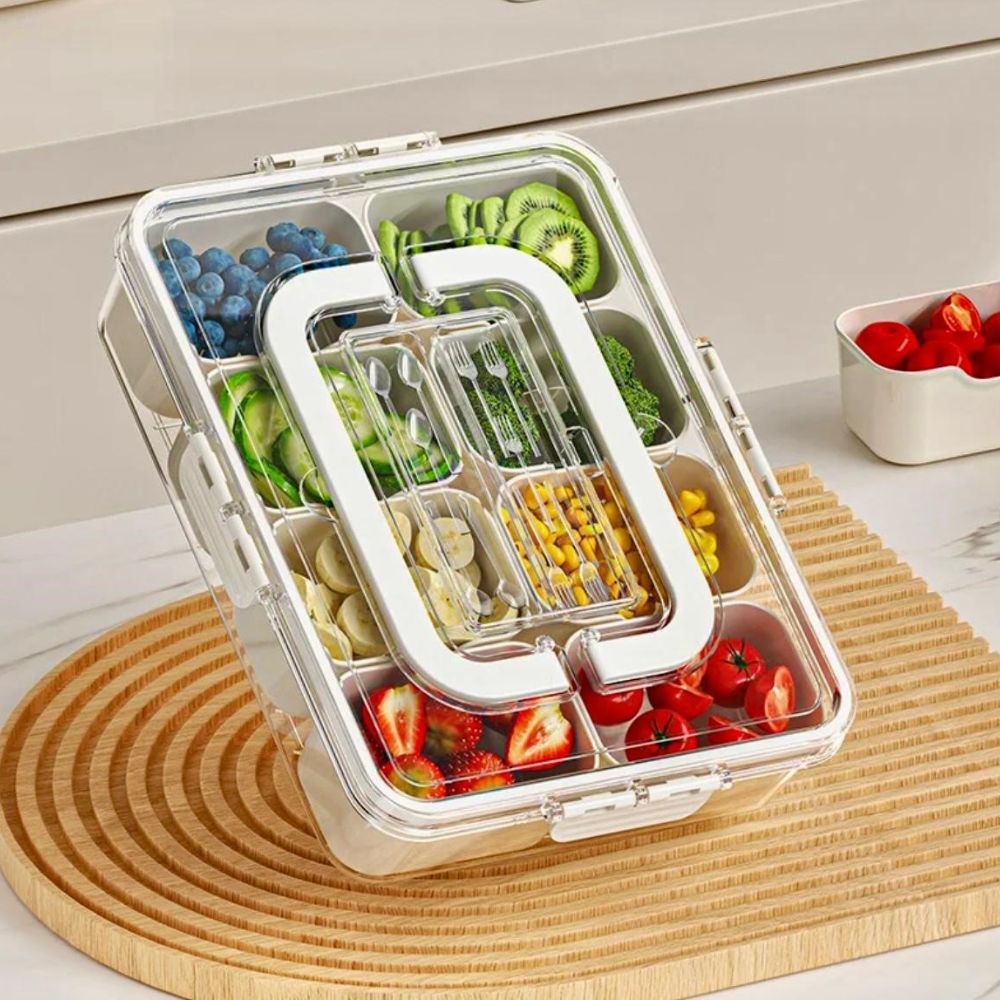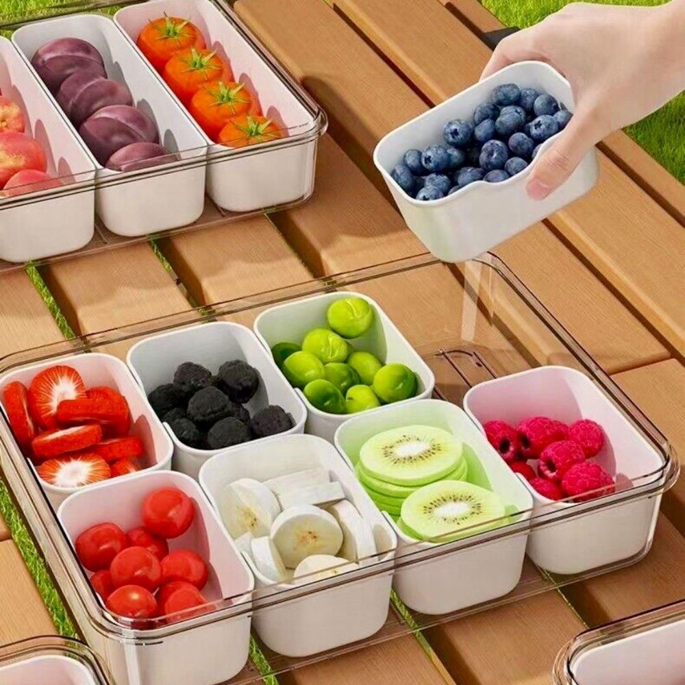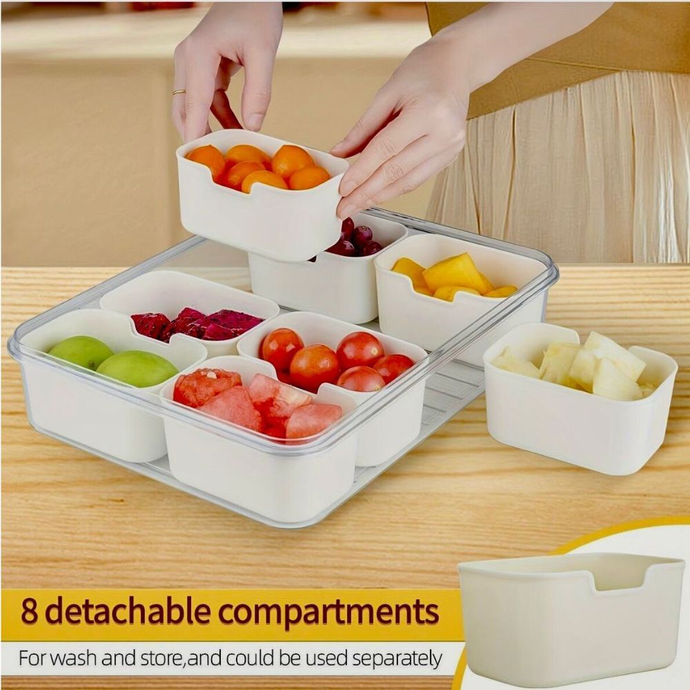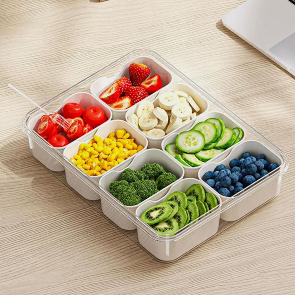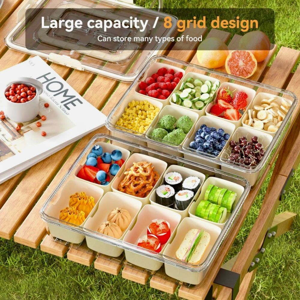 The 8 compartments allow for a diverse snack selection, while the transparent lid ensures easy visibility of contents