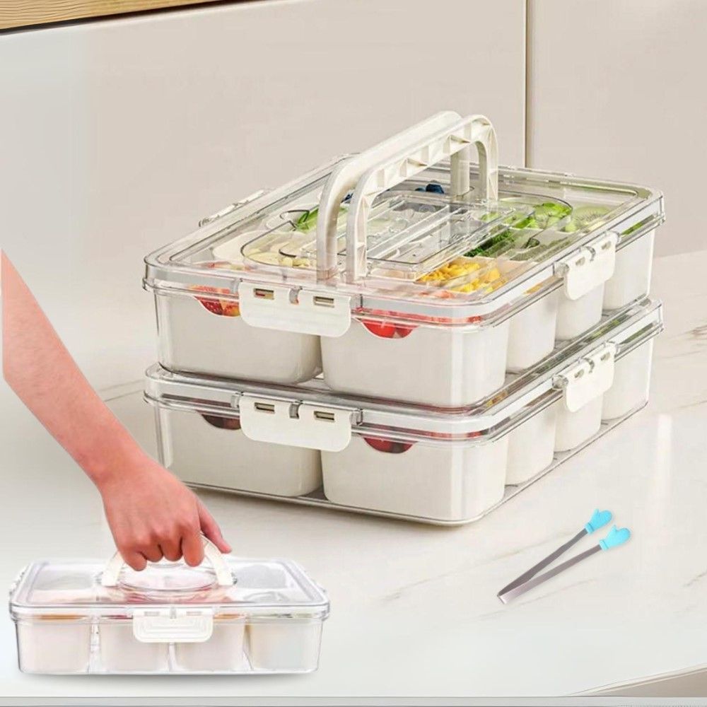 8 Compartment Snack Serving Tray With Lid And Handle And Tong-Set Of 2