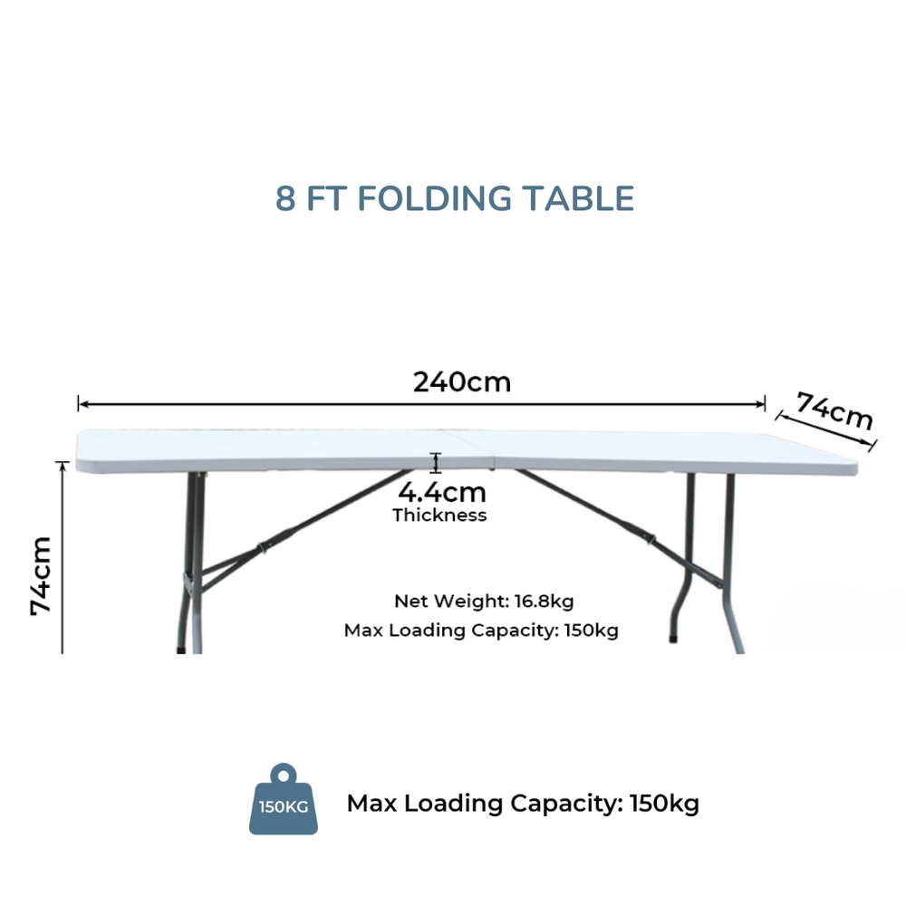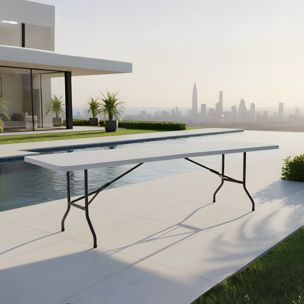 Large 8-foot folding table providing exceptional strength and stability for heavy-duty use