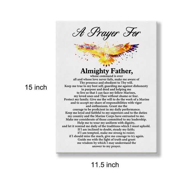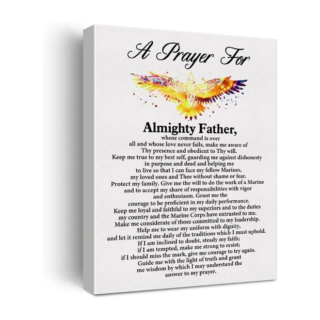 A Marine'S Prayer Quote Poster Canvas Wall Art For Office Home Decor - Marines Gift Inspirational Marine Canvas Print Wall Art Painting Ready To Hang Gifts - Easel & Hanging Hook 12X15 Inch