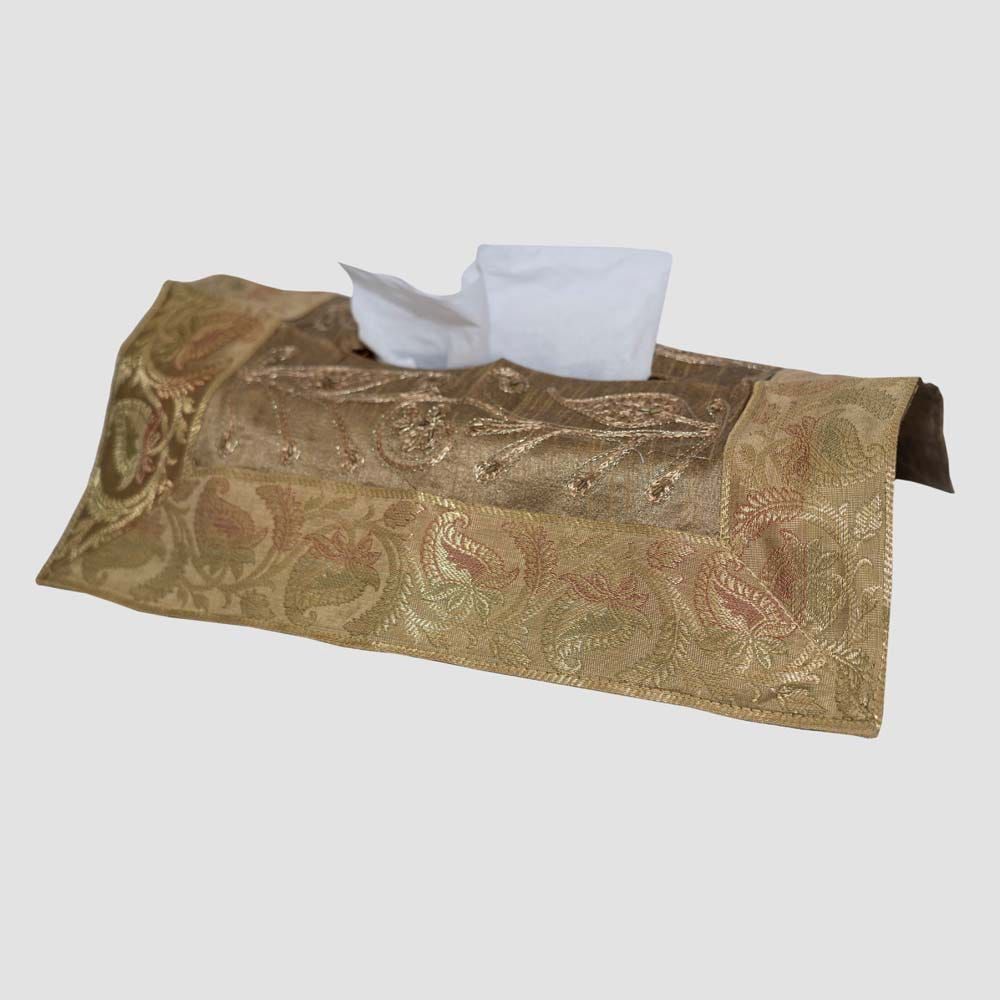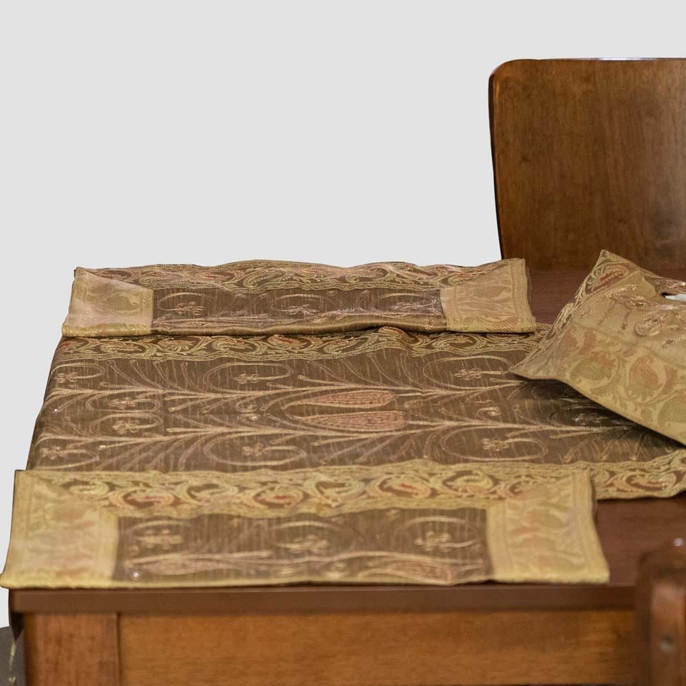 آسيا - طقم سفرة 4 قطع - 1 مفرش 50 ×150 سم - 2 لبادة صحون 50 × 50 سم - 1 غطاء علبة مناديل - نحاسي
