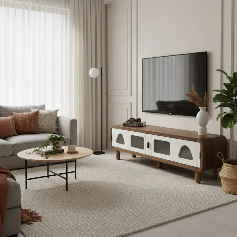 Beyond its sleek appearance, the Advent TV Unit is highly practical. Featuring spacious cabinets, it provides ample storage for consoles, remotes, and accessories while keeping clutter neatly tucked away. Crafted from premium engineered wood with veneer detailing, its robust structure ensures durability and long-lasting performance—making it as reliable as it is elegant.