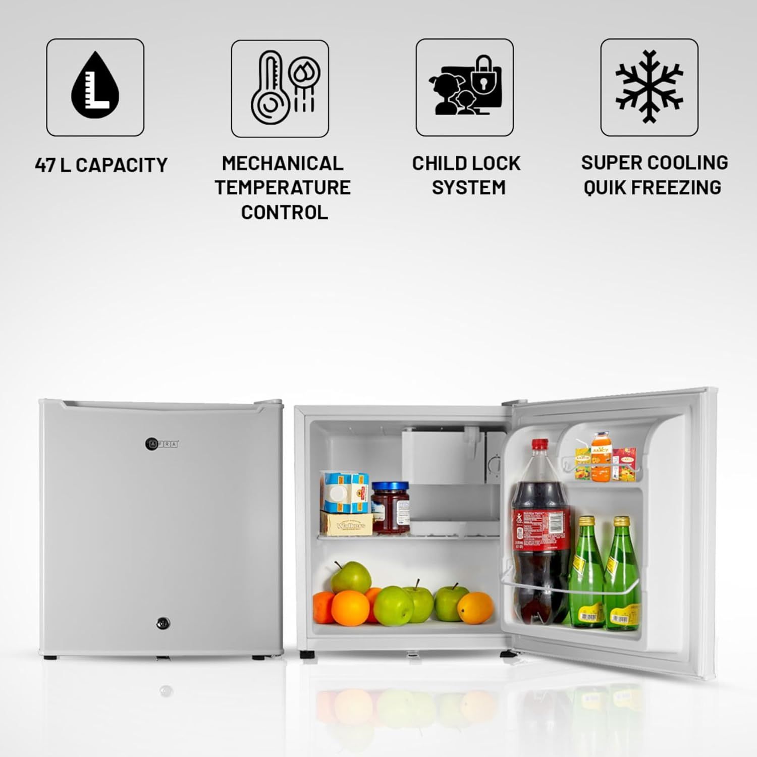 Afra Single Door Refrigerator With Strong Compressor & Glass Shelves | 93L Capacity | Mechanical Temperature Control, Door Lock, Energy Saving | Model Af-9300Rfwt | White | 2-Year Warranty