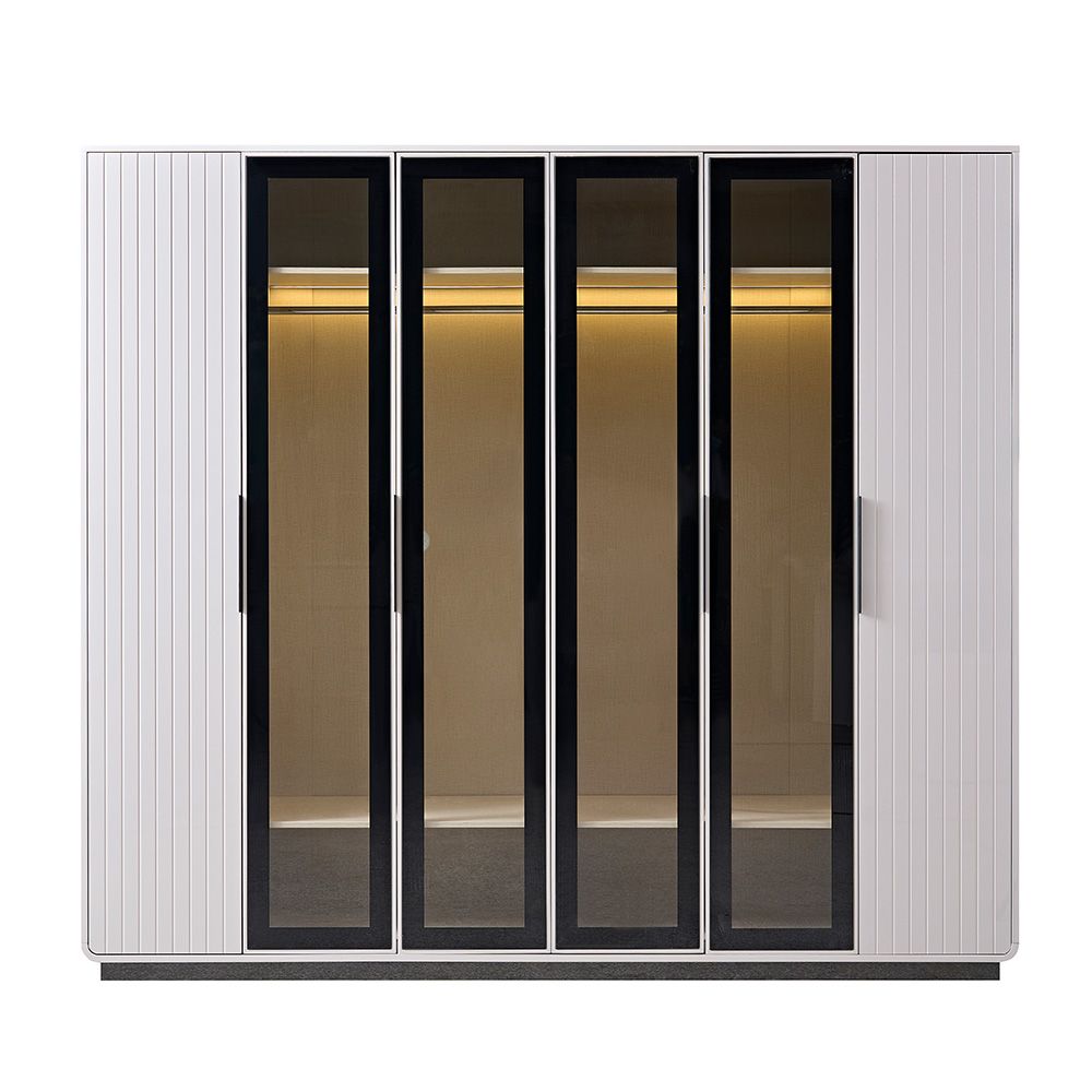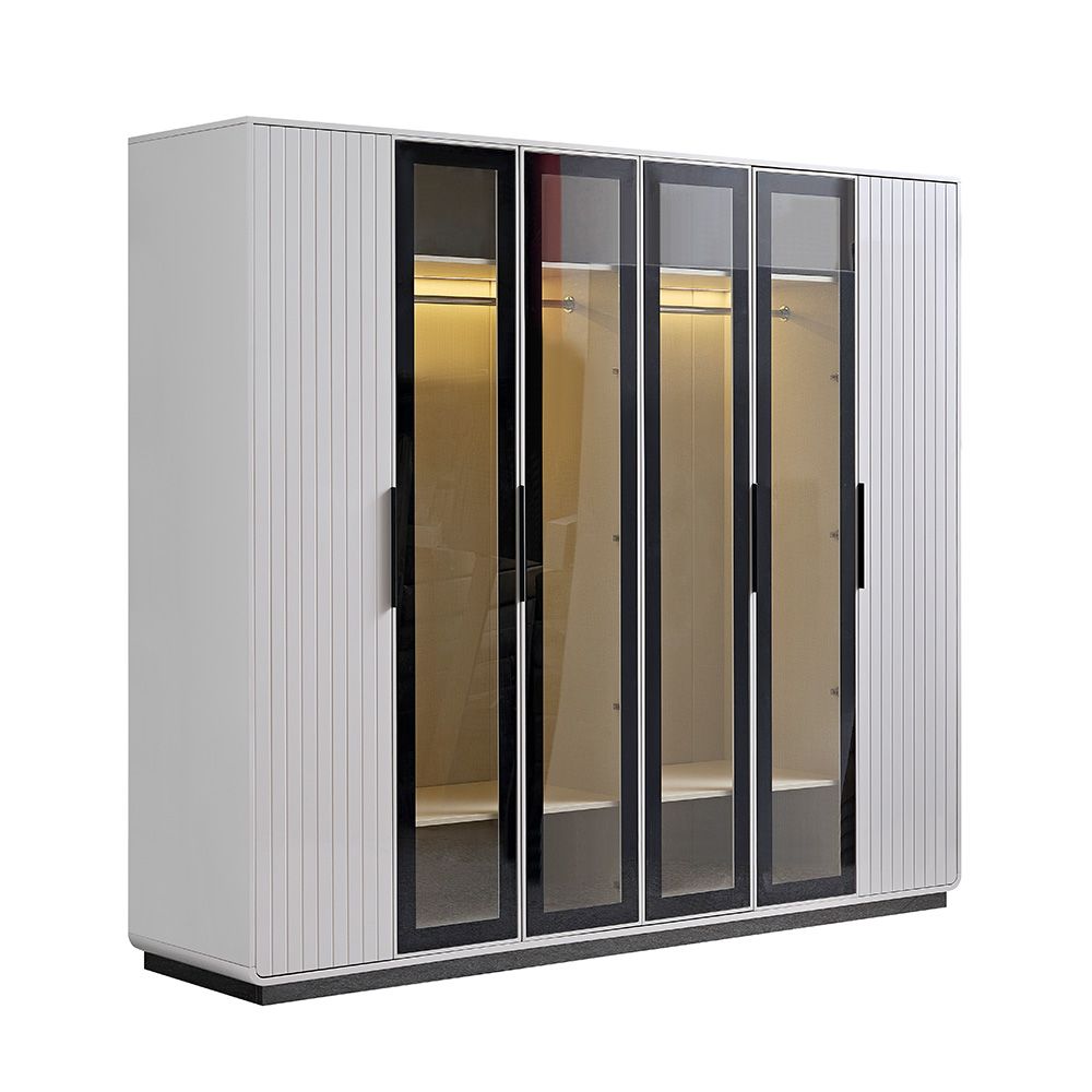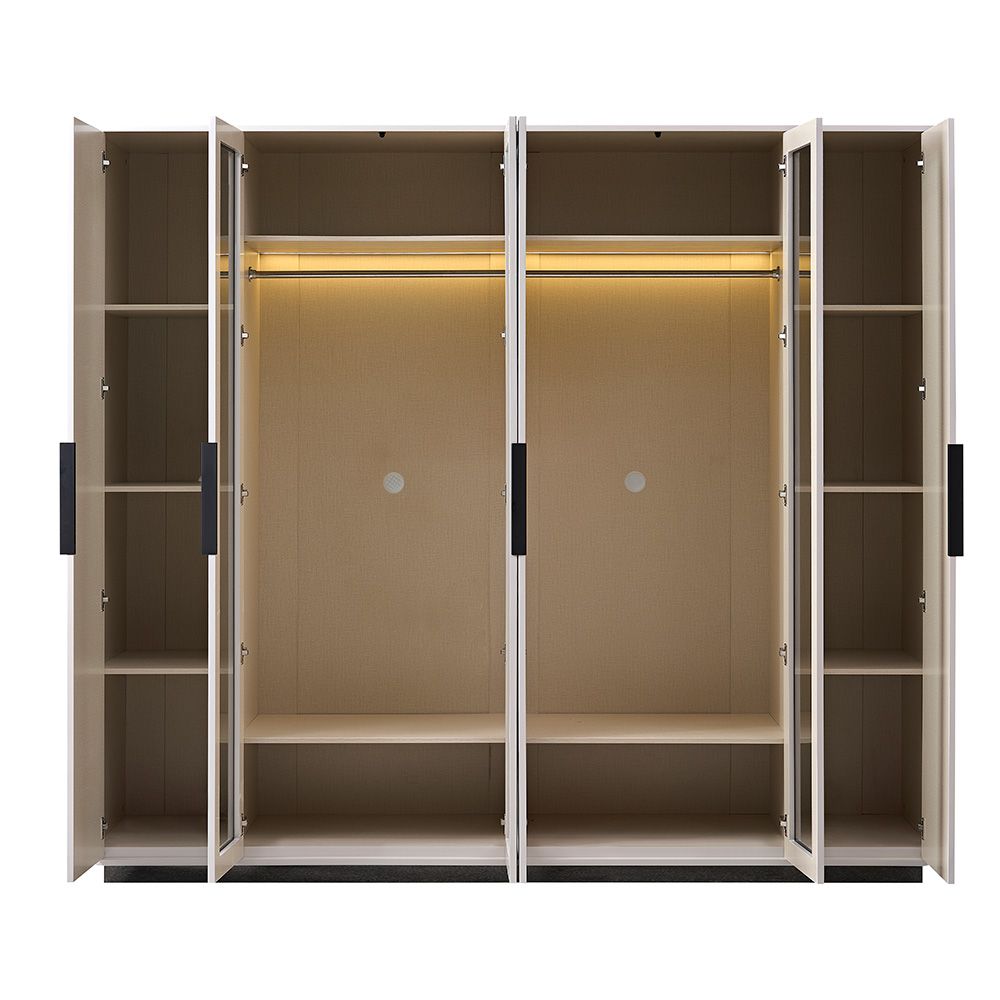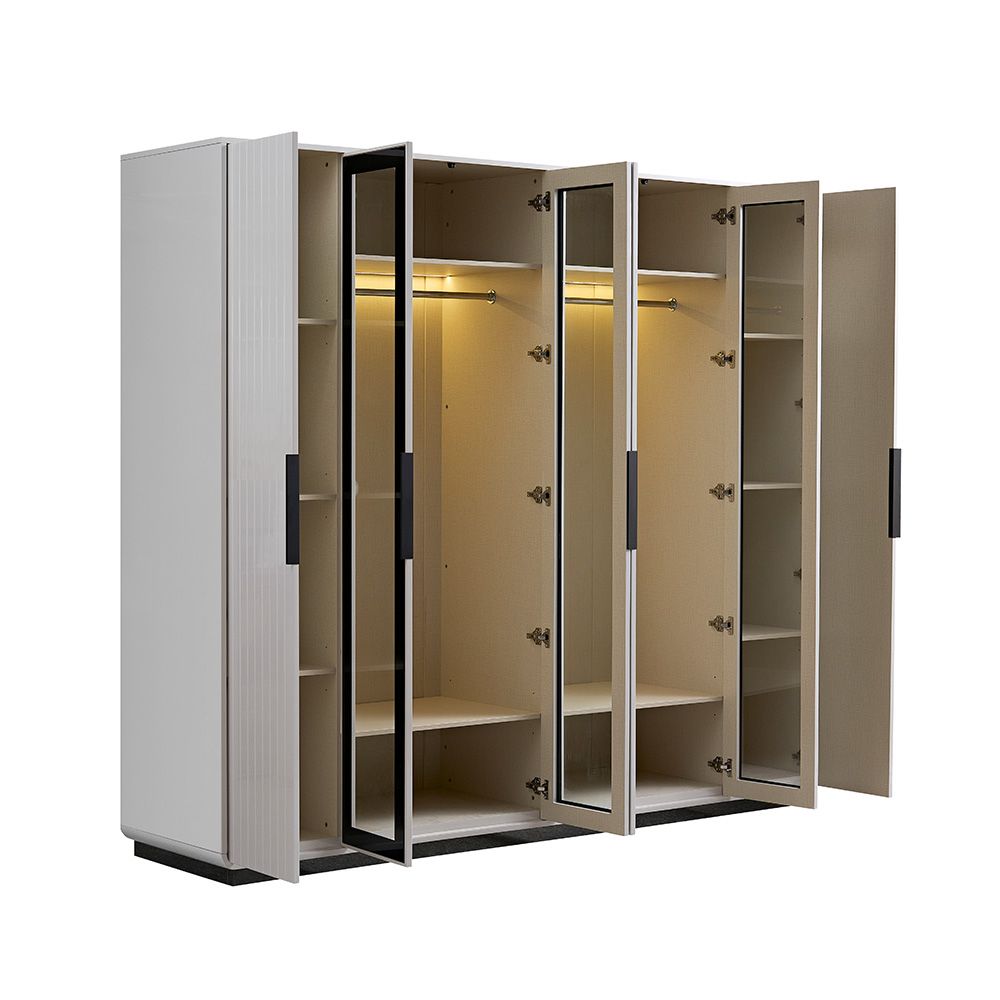 Akira 6 Door Wardrobe With 4 Glass Door and LED-L.Grey