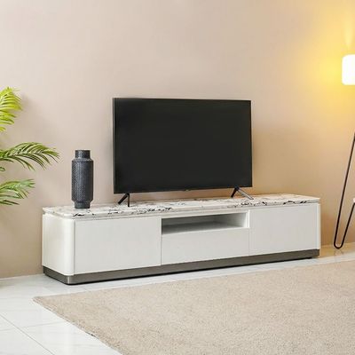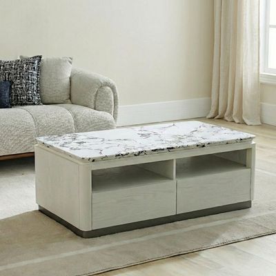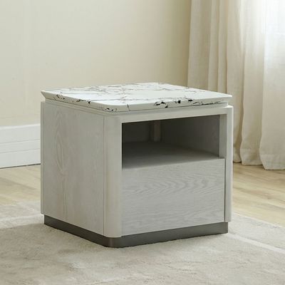 Akira Stone Top End Table With 1 Drawer -White/Grey