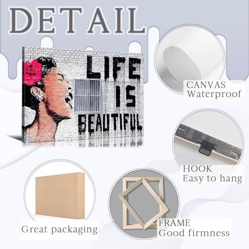 صور المنتج ALAYRA Banksy Wall Art Graffiti Wall Art Life is Beautiful Graffiti Art Colorful Decor Pop Art Wall Decor Graffiti Poster (12''H x 18''W) تستخدم لأغراض التوضيح فقط. وقد يختلف لون المنتج قليلاً بسبب إضاءة التصوير أو إعدادات الشاشة.