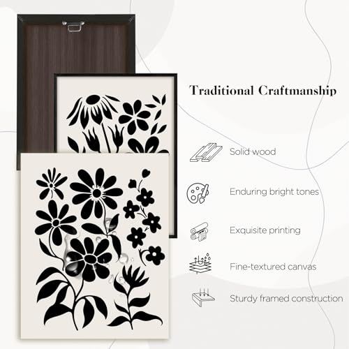 ALAYRA Boho Framed Canvas Wall Art for Living Room Black and White Wall Art Decor Bedroom Bathroom Botanical Office Kitchen Wall Prints(16x24)