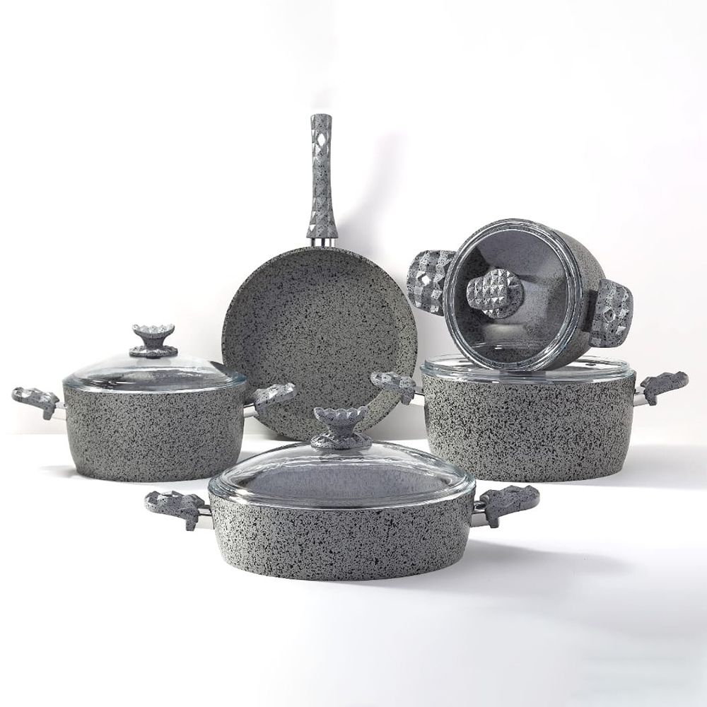 Alfa 9-Piece Swiss Stone Granite Cookware 4MM- Volcanic