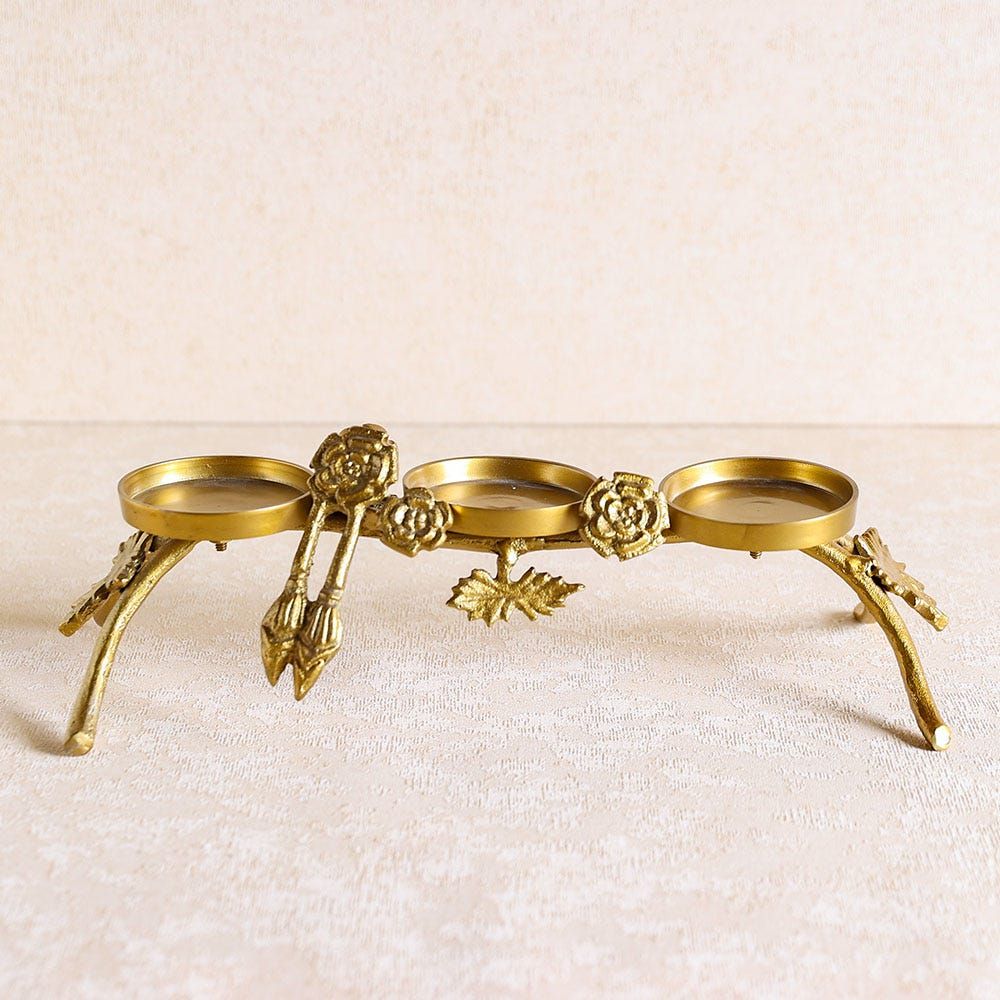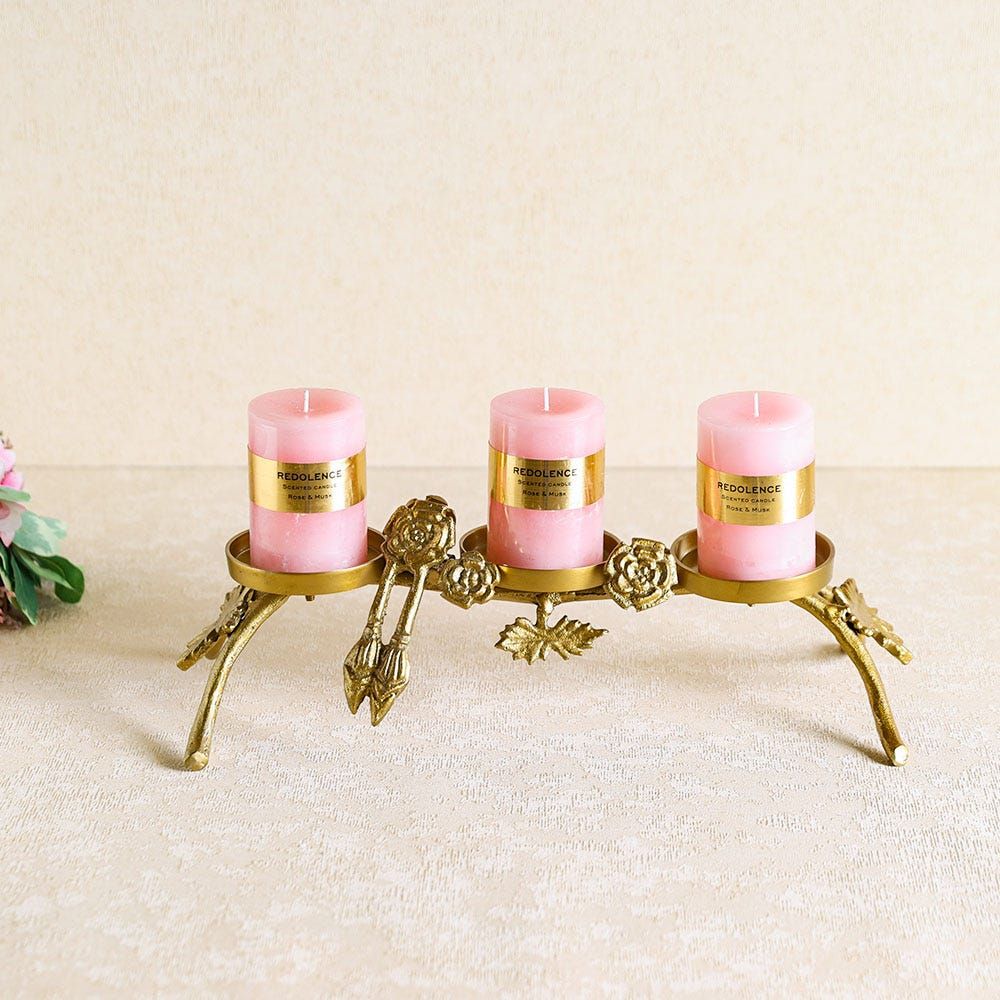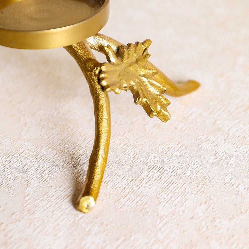 Aliena Pillar Candle Holder with Decorative Stand Gold H:12CM