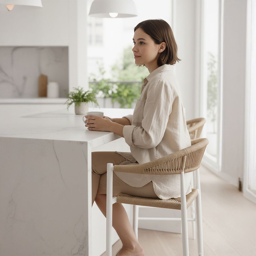 صور المنتج ألما كرسي بار حبل تستخدم لأغراض التوضيح فقط. وقد يختلف لون المنتج قليلاً بسبب إضاءة التصوير أو إعدادات الشاشة.