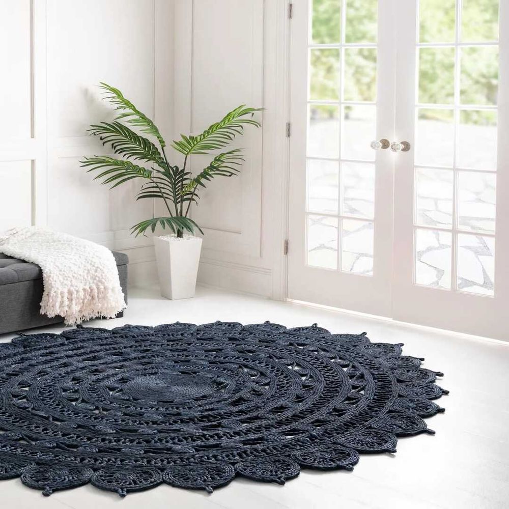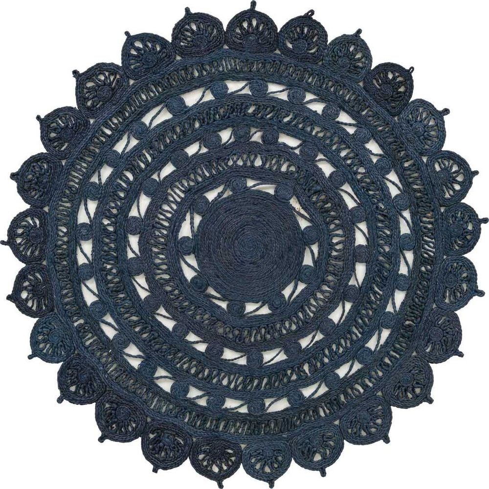 Almyros Rug-Jute, Wool & Cotton Style-Navy Blue-120 cm (3.9 ft)