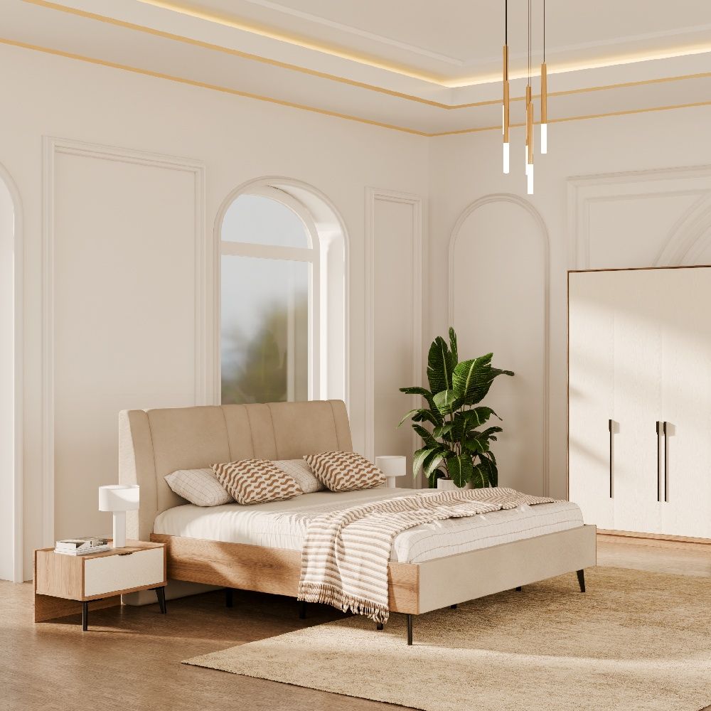 Amara 180X200 Upholstered King Bed - Oak/Beige