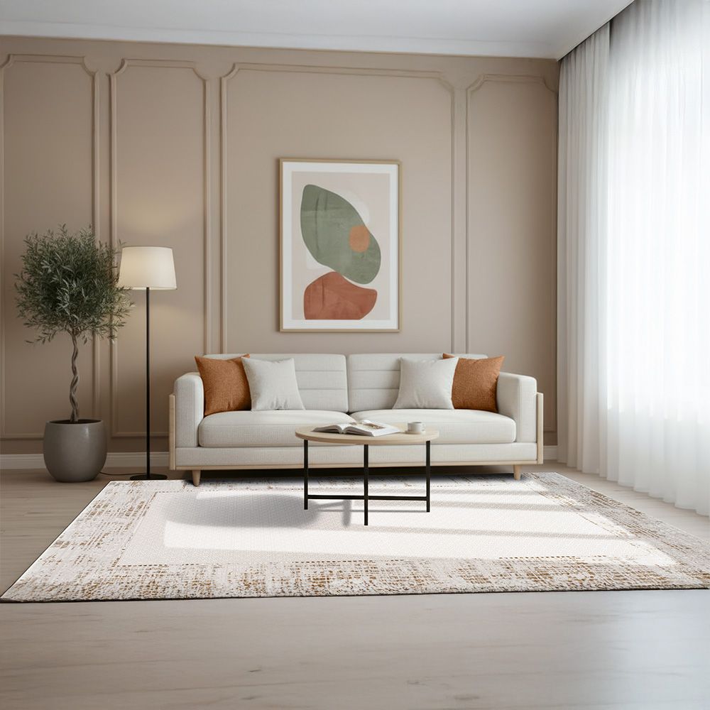 Airing and vacuuming will help to eliminate the smell that Rug can have when its new.