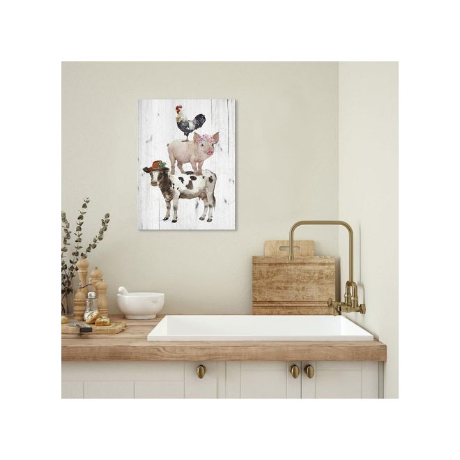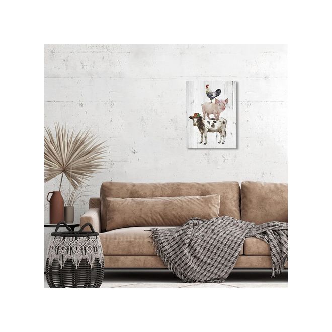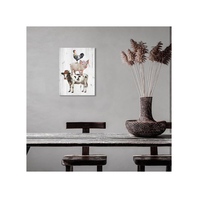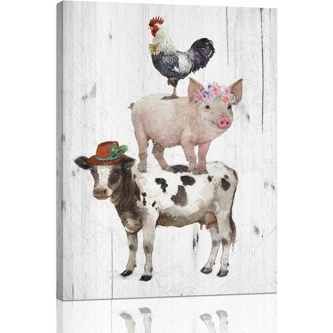 Animals Canvas Wall Art: Rooster Pig Cow Wall Decor - Funny Artwork Decoration For Home Office, Rustic Poster Framed Print For Living Room Bedroom Ready To Hang