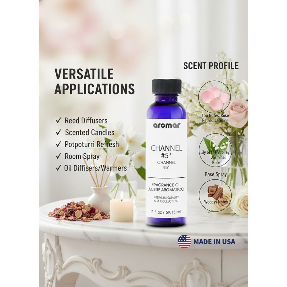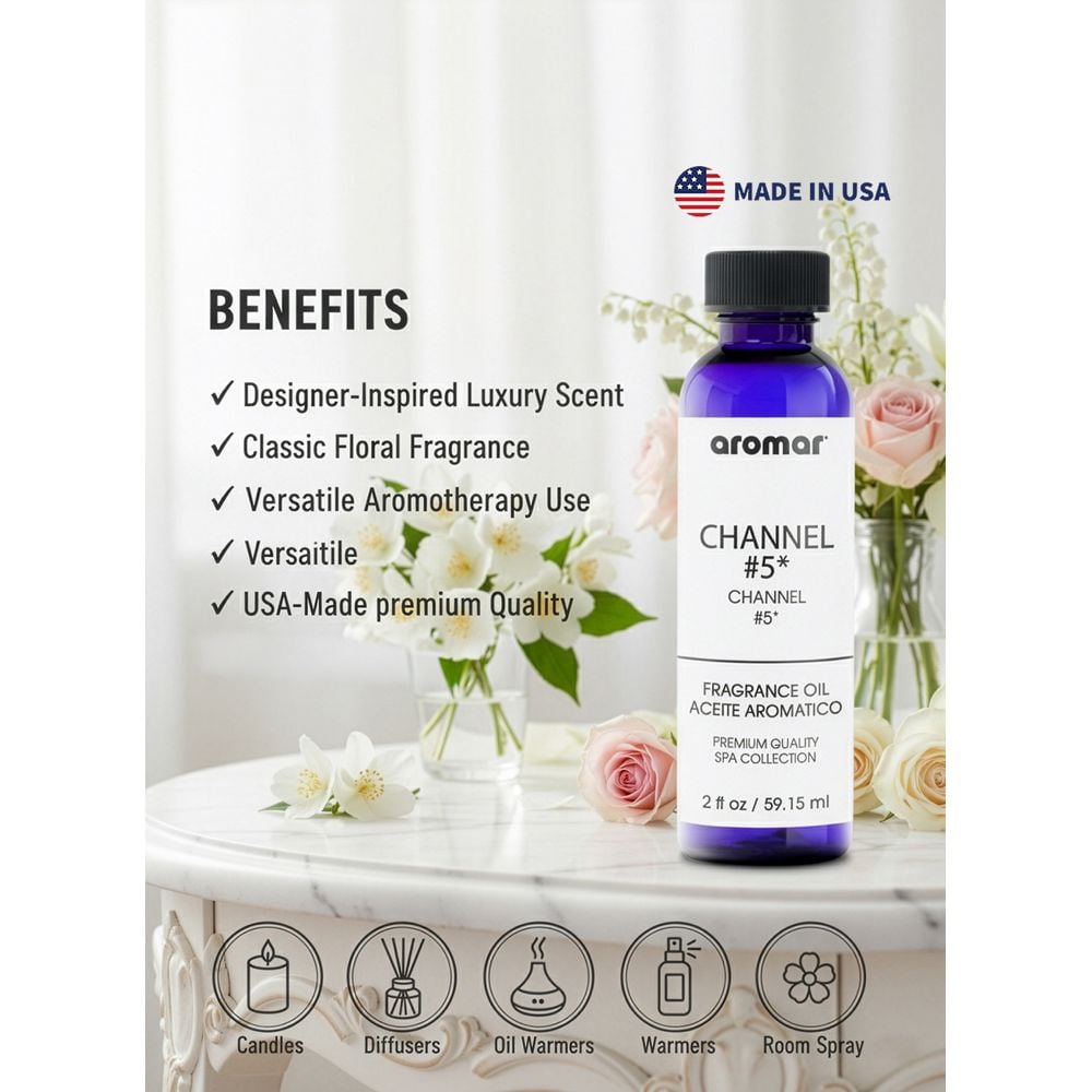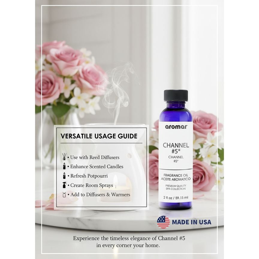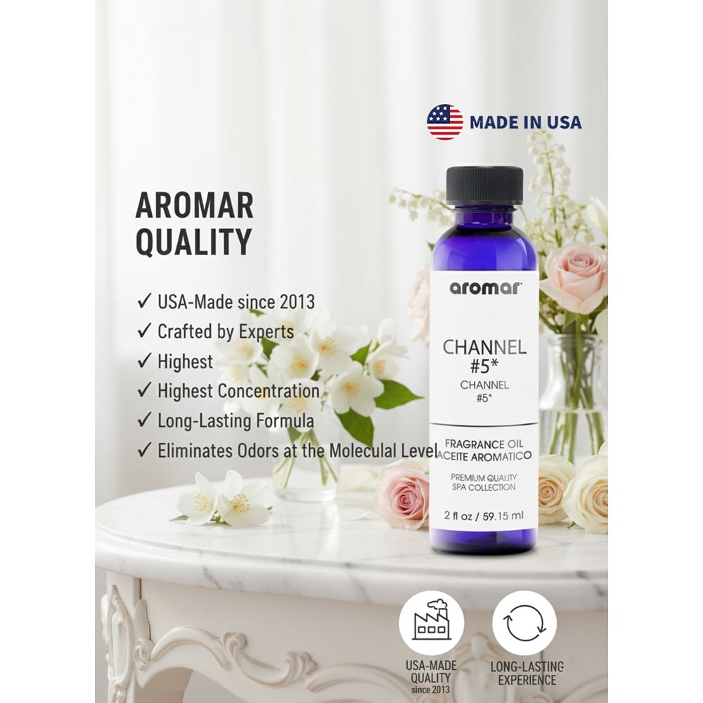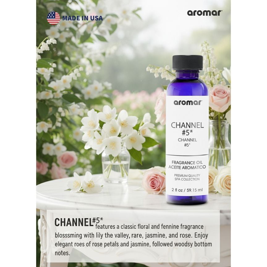 Aromar Spa Aromatic Oil – Channel #5© Fragrance, 59.15ml | Luxury Perfume-Inspired Essential Oil for Diffusers, Humidifiers & Candles | Elegant Floral Aroma for Home, Spa & Office