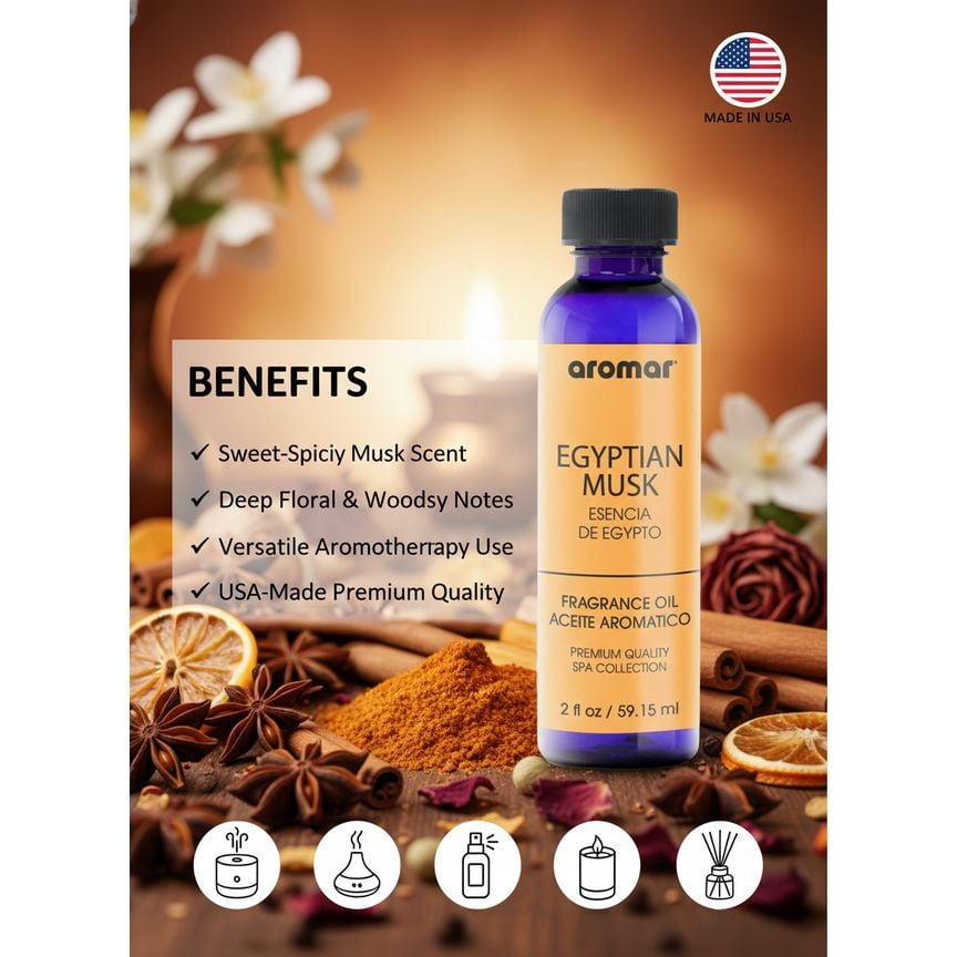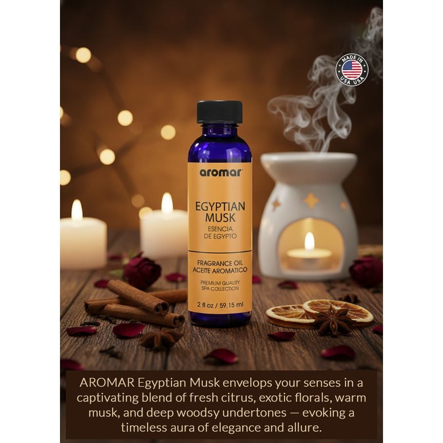 Aromar Spa Aromatic Oil – Egyptian Musk Fragrance, 59.15ml | Warm, Sensual & Earthy Essential Oil for Diffusers, Humidifiers & Candles | Timeless Unisex Aroma for Home, Spa & Meditation