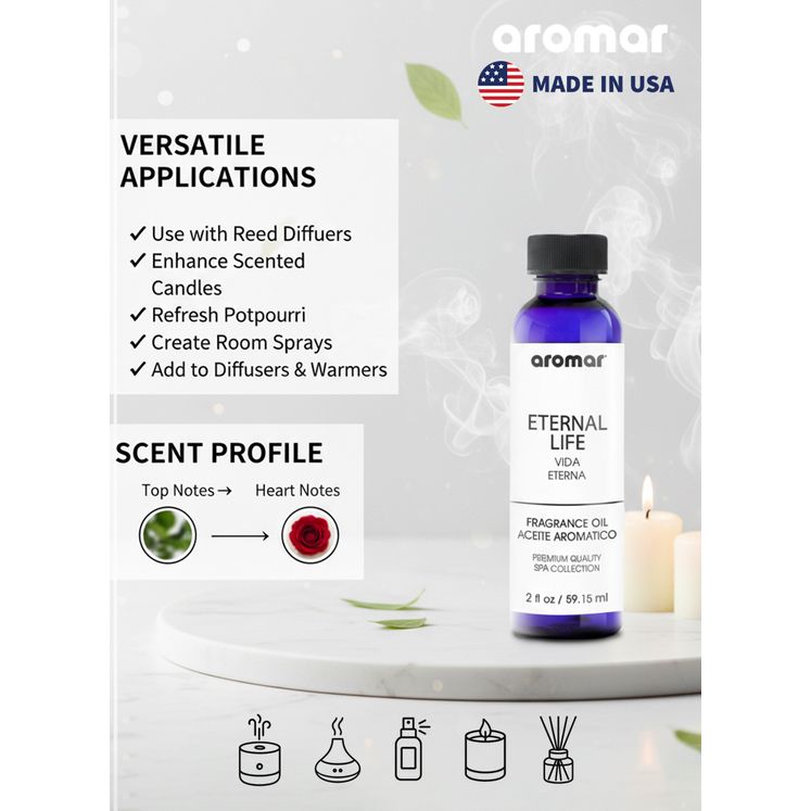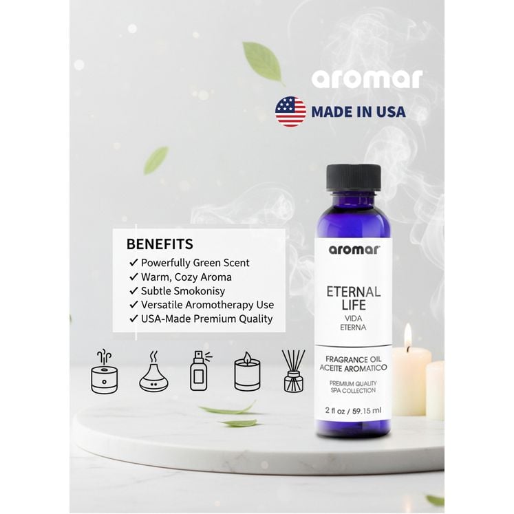 Aromar Spa Aromatic Oil – Eternal Life Fragrance, 59.15ml | Fresh, Uplifting & Spiritual Essential Oil for Diffusers, Humidifiers & Candles | Purifying Scent for Relaxation, Meditation & Home Energy Balance