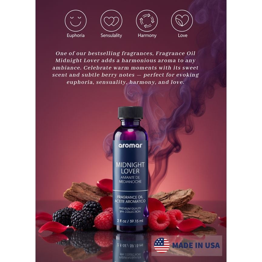 Aromar Spa Aromatic Oil – Midnight Lover Fragrance, 59.15ml | Seductive, Warm & Luxurious Essential Oil for Diffusers, Humidifiers & Candles | Romantic Night Aroma for Relaxation & Mood Enhancement