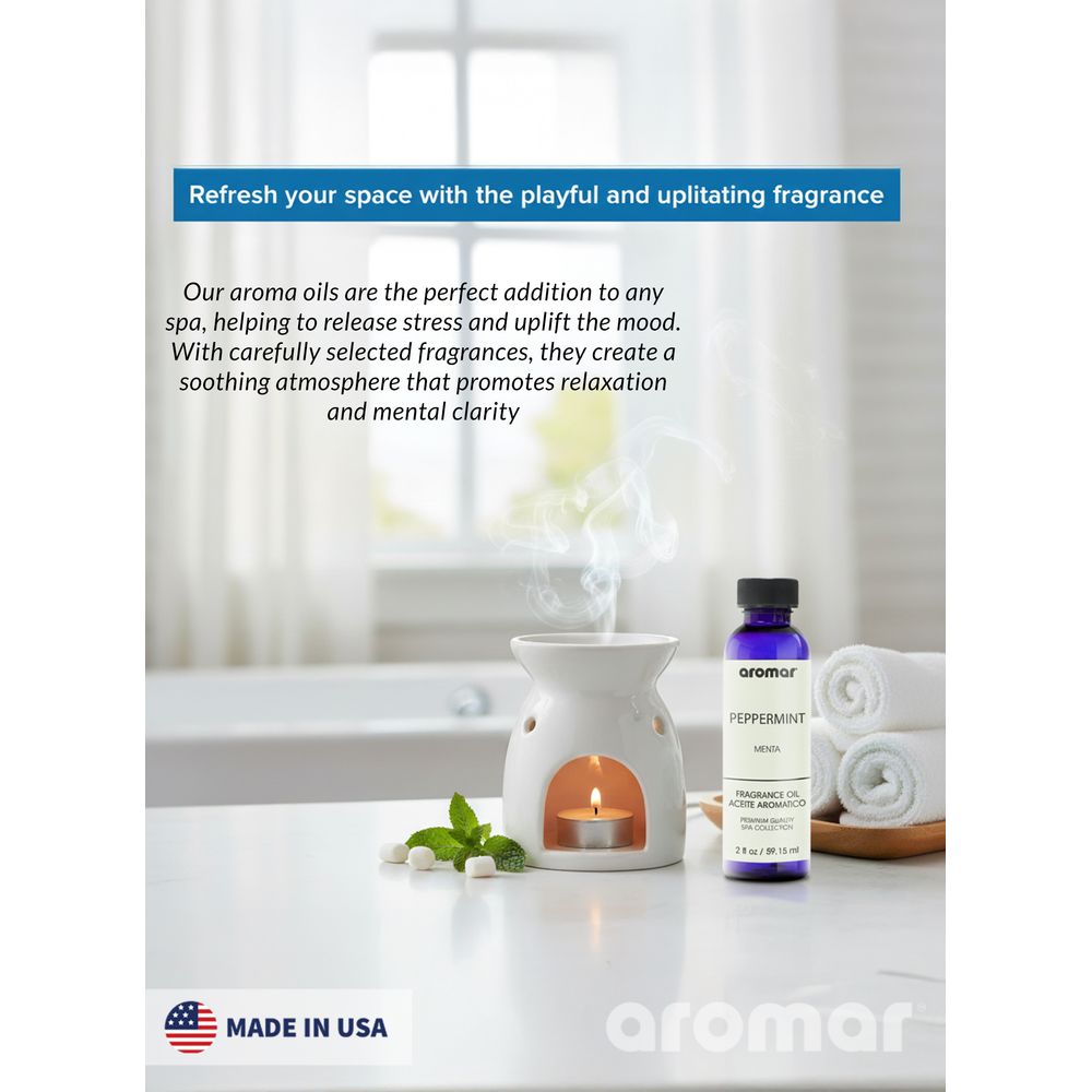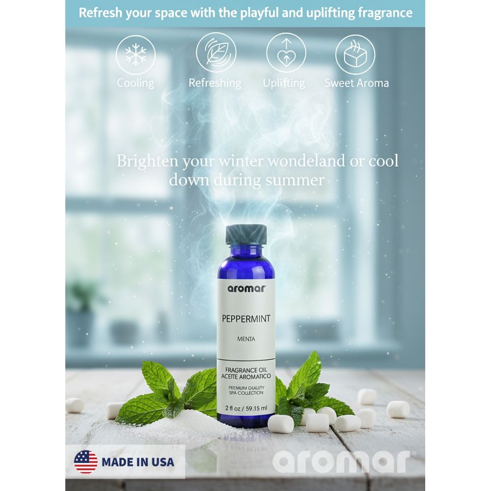 Aromar Spa Aromatic Oil – Peppermint Fragrance, 59.15ml | Cool, Minty & Energizing Essential Oil for Diffusers, Humidifiers & Candles | Refreshing Home Aroma for Focus, Relaxation & Stress Relief