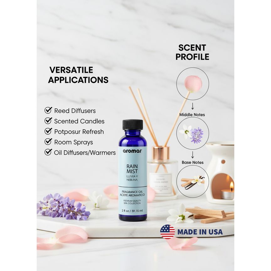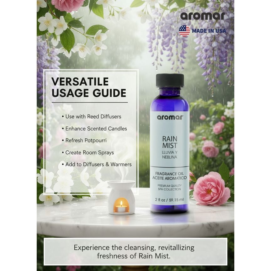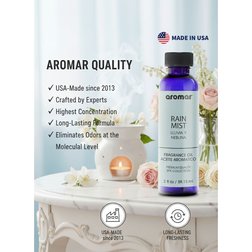 Aromar Spa Aromatic Oil – Rain Mist Fragrance, 59.15ml | Fresh Aqua-Inspired Essential Oil for Diffusers, Humidifiers & Candles | Clean, Dewy & Revitalizing Aroma for Home, Spa & Office